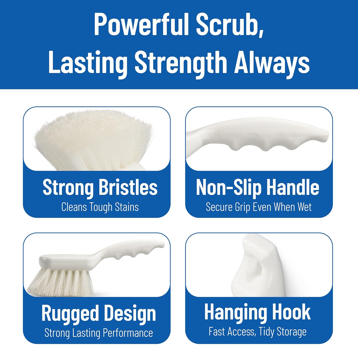 - Features tough and durable nylon bristles that remove dirt, grime, and stubborn stains