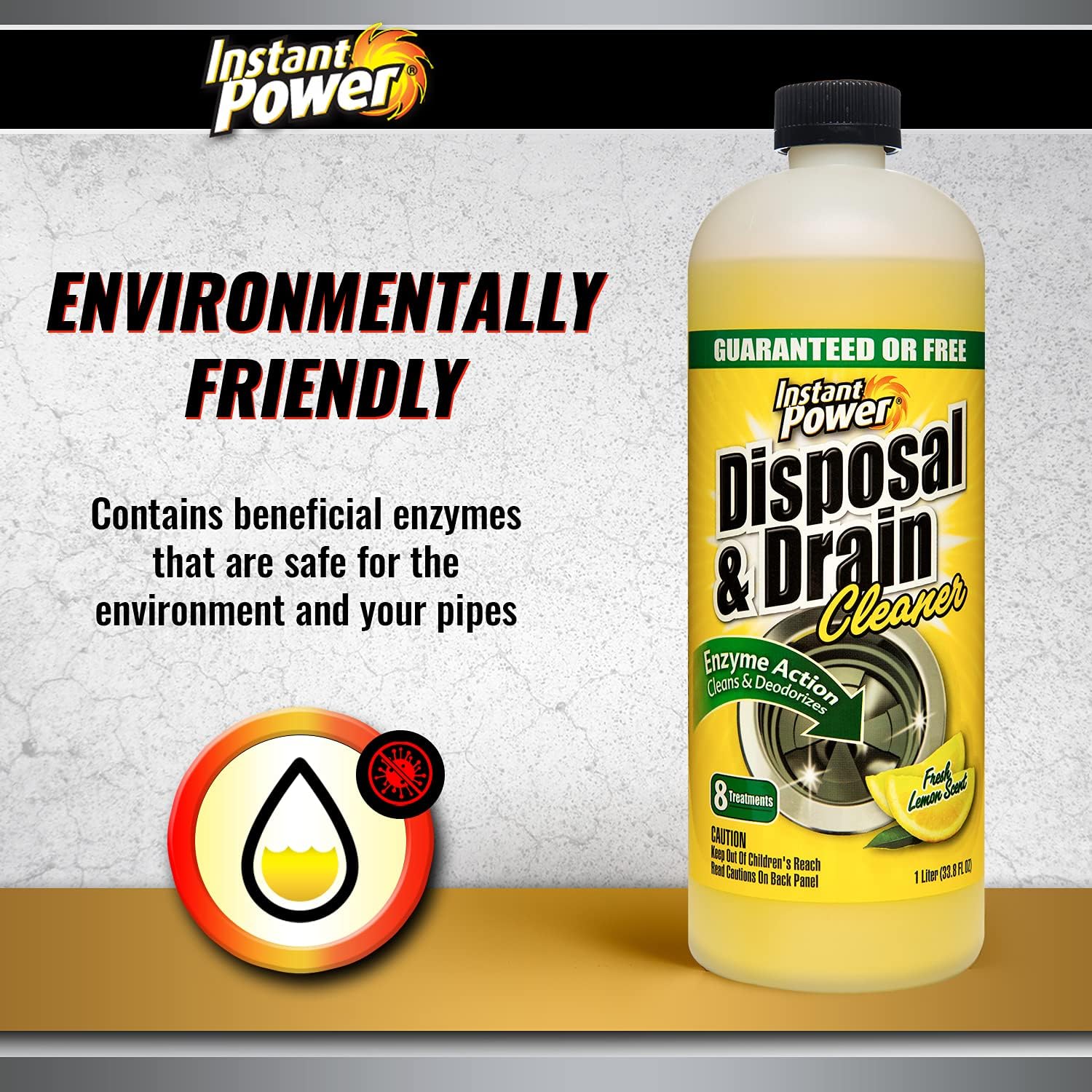 - NO HARSH CHEMICALS: Instant Power Disposal and Drain Cleaner does not use harmful acids and caustic ingredients; It contains powerful enzymes that clear clogs but is safe on your pipes and septic system