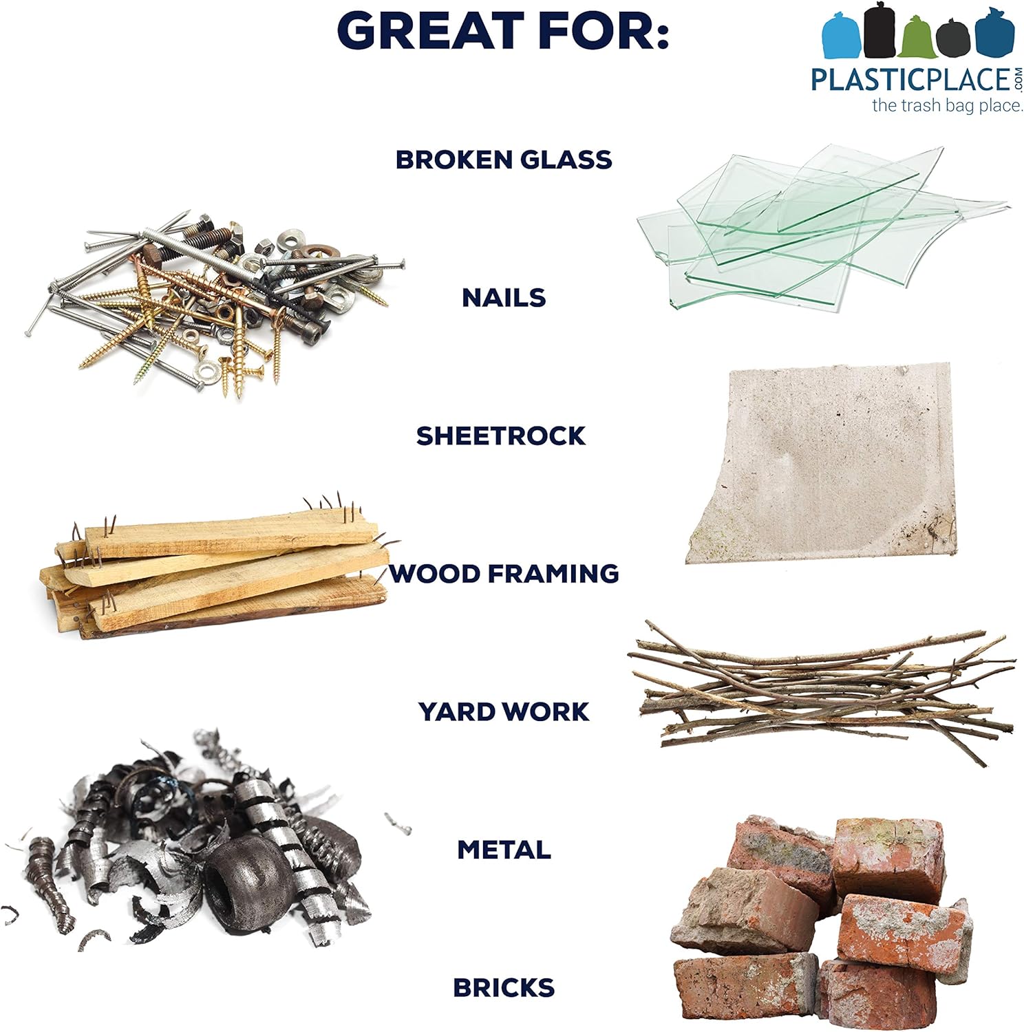 - MULTI USE - Great for construction debris, demolitions, heavy duty clean-ups and storage, yard work, garage clean-up, or workshop. These bags are popular for commercial or residential use.