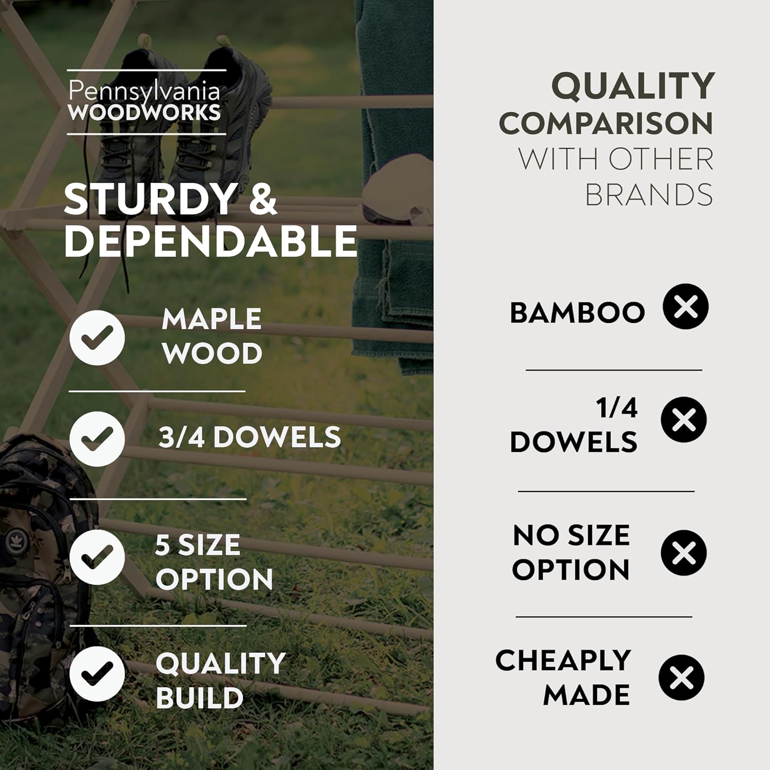 Pennsylvania Woodworks Clothes Drying Rack: Solid Maple Hardwood Laundry Rack for Bedding, Blankets, Towels & More, Heavy Duty, Folding Drying Rack Made in USA, No Assembly Needed, Extra Large
