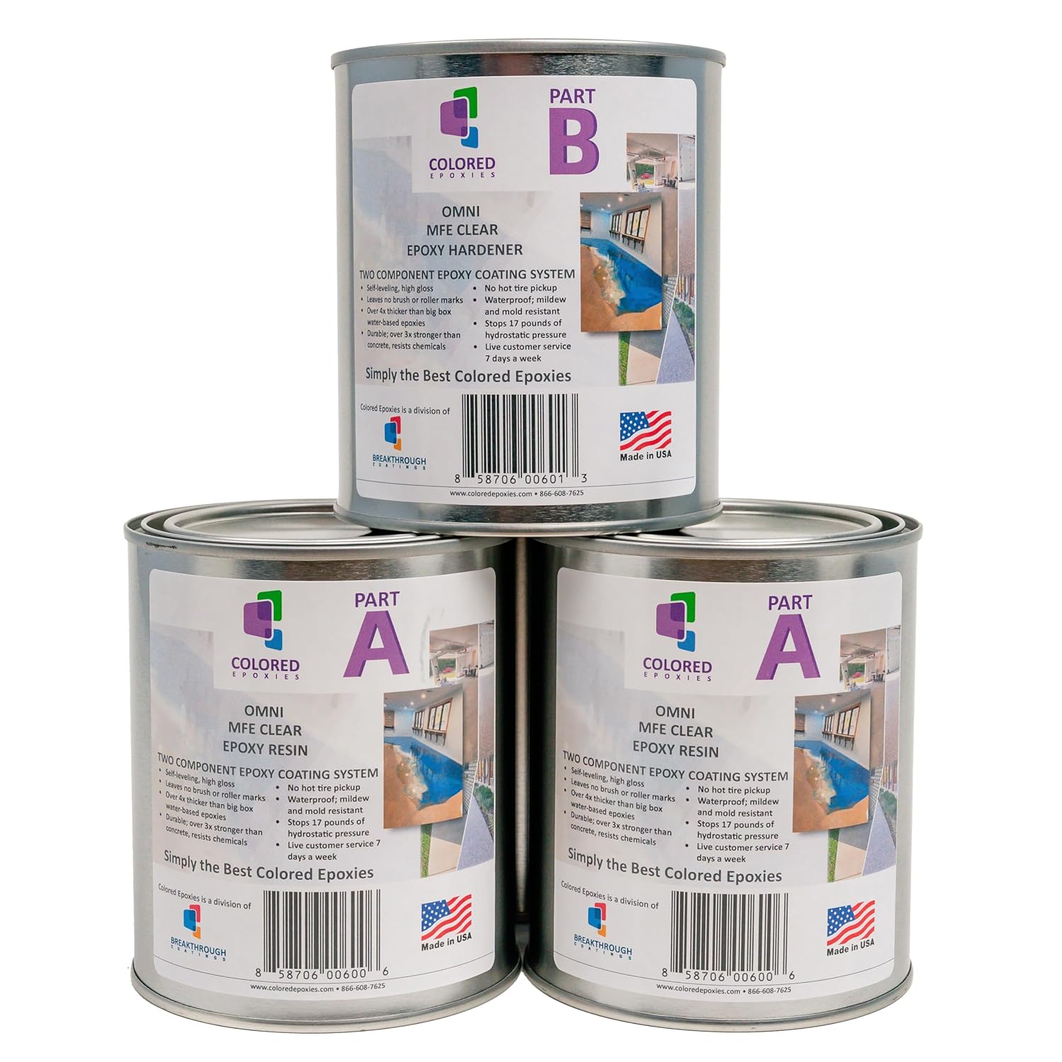 Coloredepoxies 10001 Clear Epoxy Resin Coating 100% Solids, High Gloss For Garage Floors, Basements, Concrete and Plywood. 3 Quart Kit