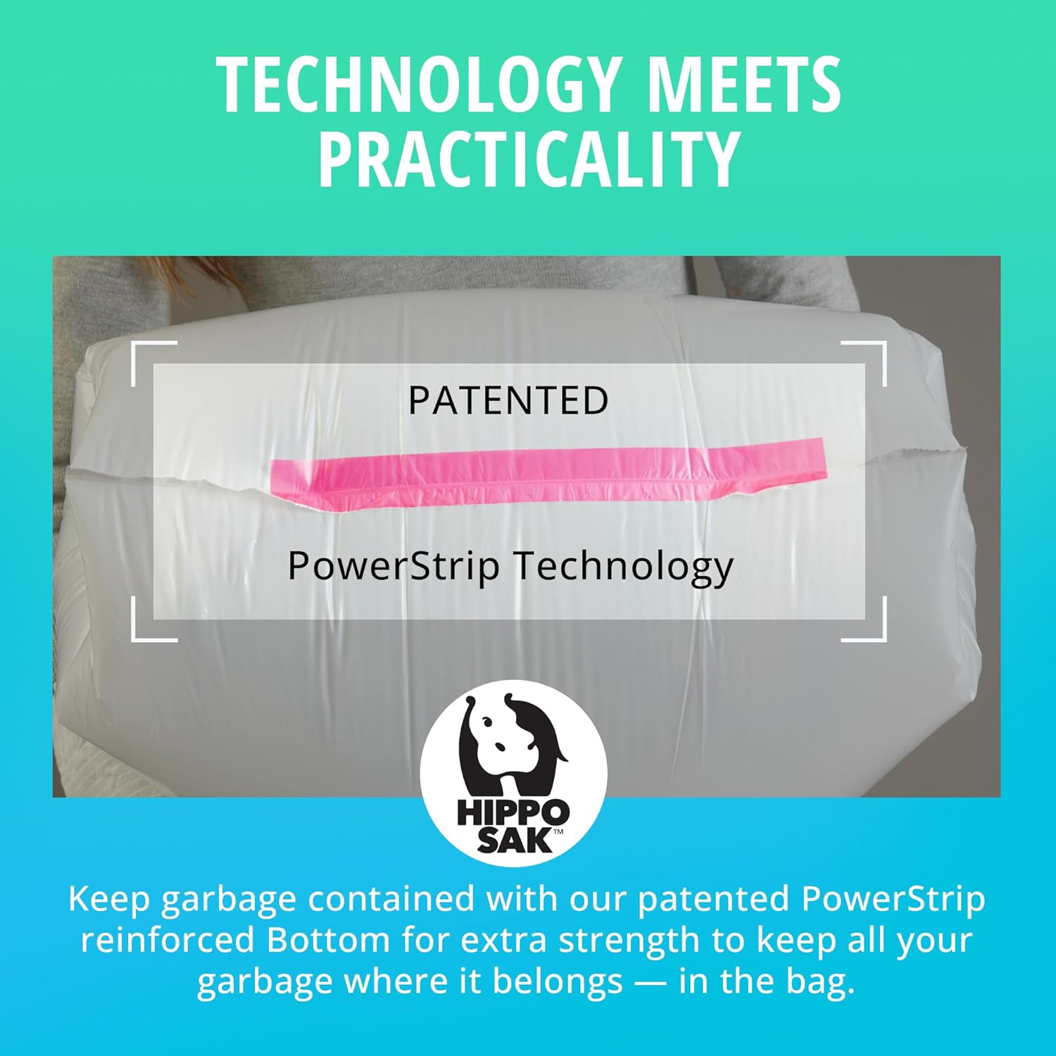 Hippo Sak - Plant Based Tall Kitchen Garbage Bags with Ergonomic Handles - 13 Gallon Trash Bags - Recyclable & Reduced Carbon Footprint - Super Strong and Leak Proof Tall Kitchen Trash Bags (45 Count)