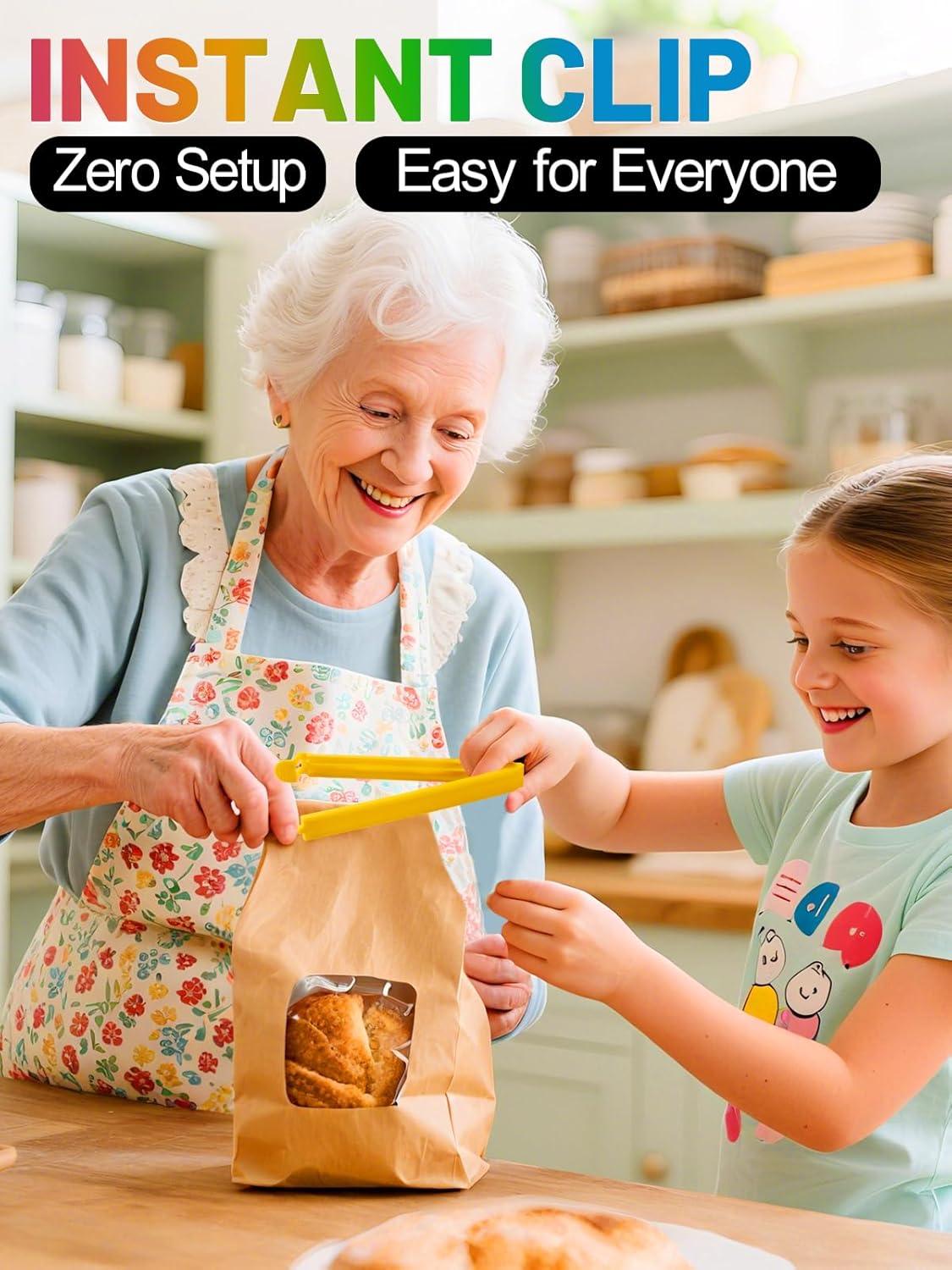 - Super Simple for Anyone: Designed for quick, hassle-free use! The intuitive clip-style closure clips on in seconds — no complicated steps. Safe, smooth edges and a manageable grip make keeping snacks fresh a breeze for all ages.