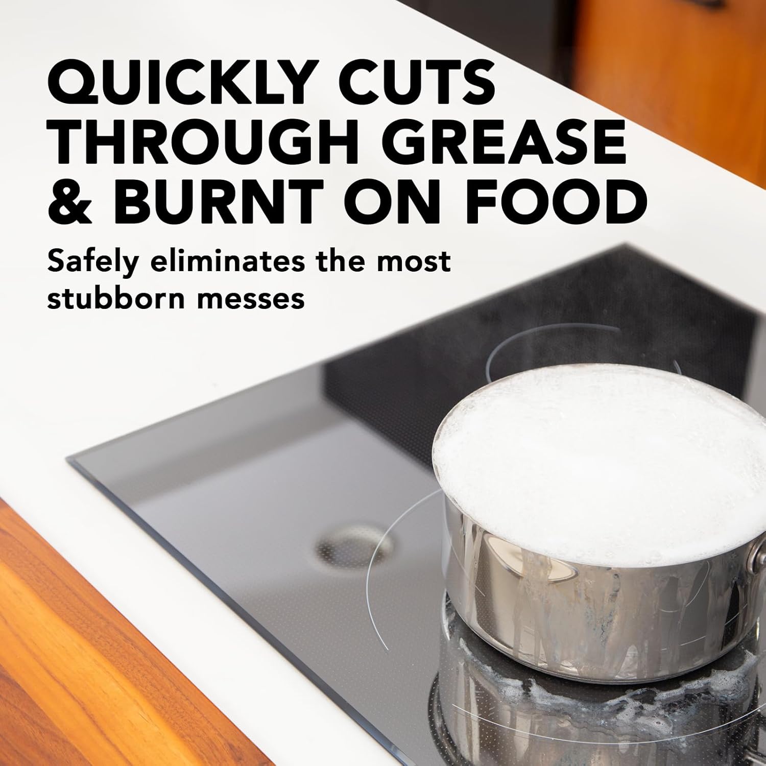 - SAFE & EASY TO USE: Leave a streak-free shine while removing splattered food, dirt, oily residue & watermarks. Will not scratch or damage your cooktop.