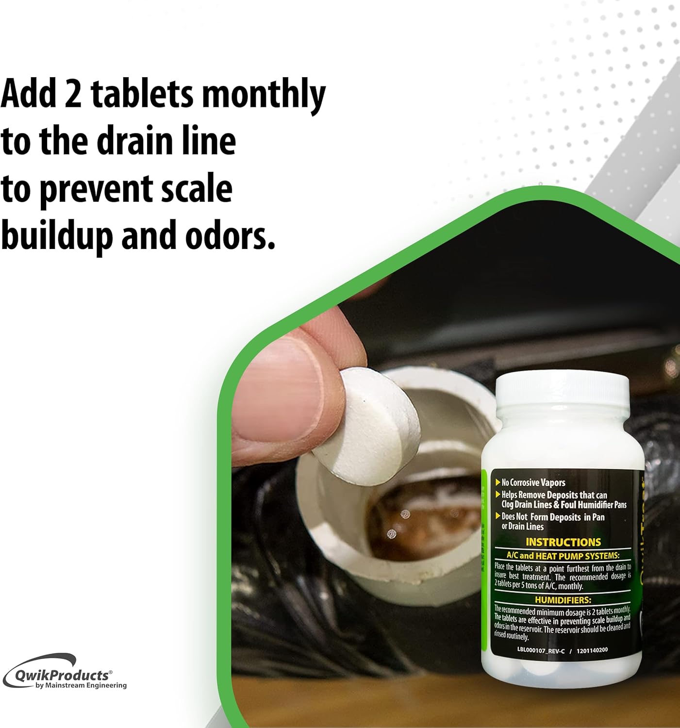 - HELPS PREVENT DREADED DRAIN CLOGS: Keep your drain line free from clogs using these cost-effective, safe air conditioner pan tablets. The ​​condensate pan tablets work on condensate water, so dirt and other junk can’t coagulate and back up drain lines.