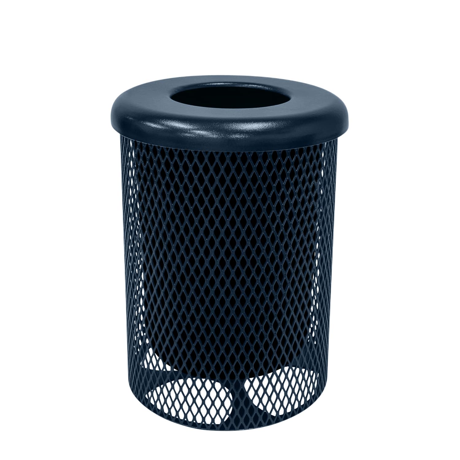 COATEDOUTDOORFURNITURE RFT-DBL Heavy Duty 32 Gallon Round Trash Receptacle, Liner Included, Dark Blue with Flat Top, Made in America