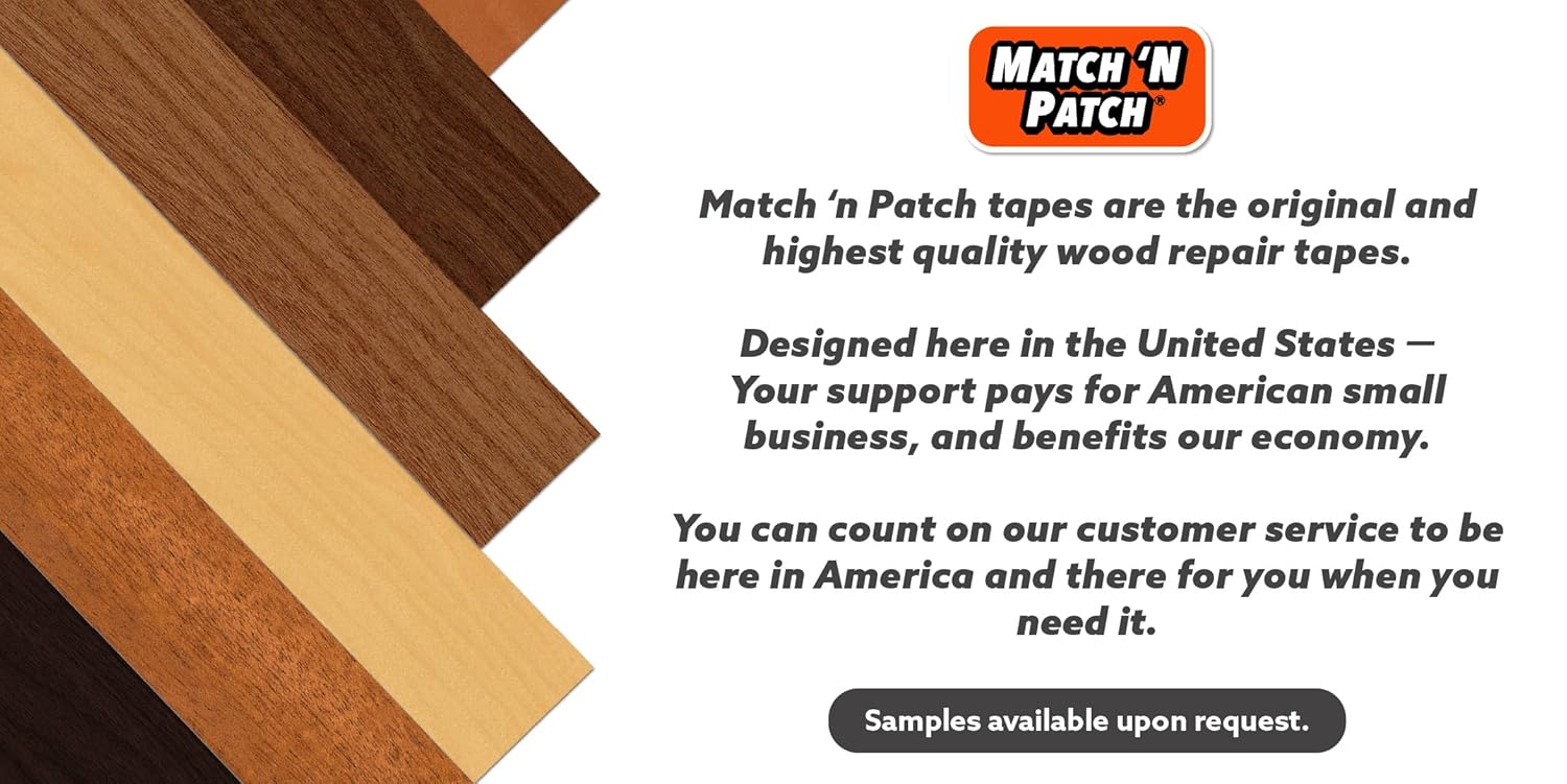 - TOUGH & REALISTIC: MATCH 'N PATCH presents a 2.25 inch x 15 feet roll of wood repair tape, featuring a robust and authentic wood appearance. Expertly designed in North Carolina, this tape is the original repair tape solution for wood repairs.