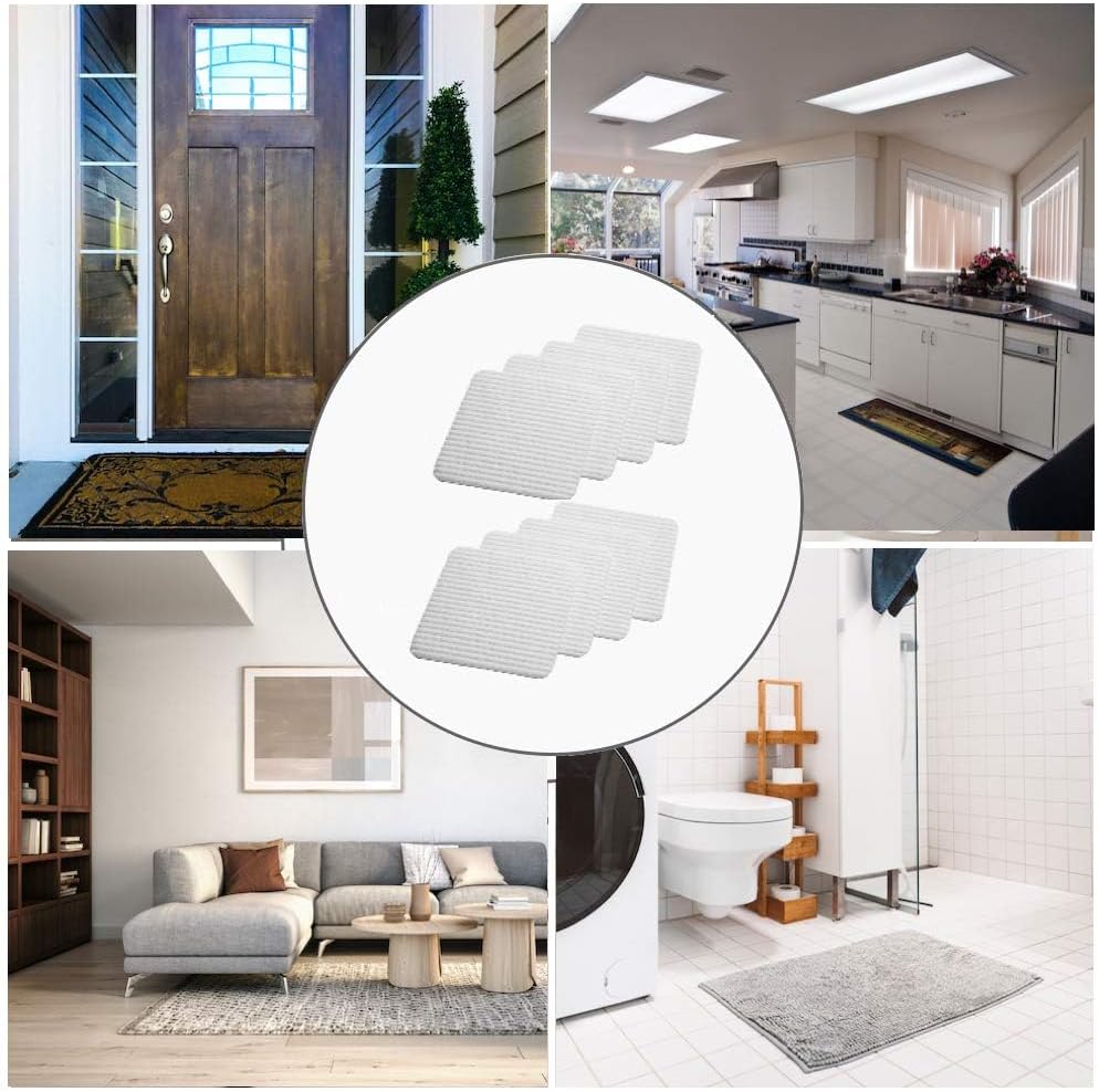 - Components. This package includes 4 pieces. The size of the gripper is 3.9inch x 3.9inch. Each piece is square in order to increase the surface area in contact with the floor. That leaves your kitchen, bathroom, and hallway much more secure. You can even use them outdoors to prevent slipping and flatten corners.