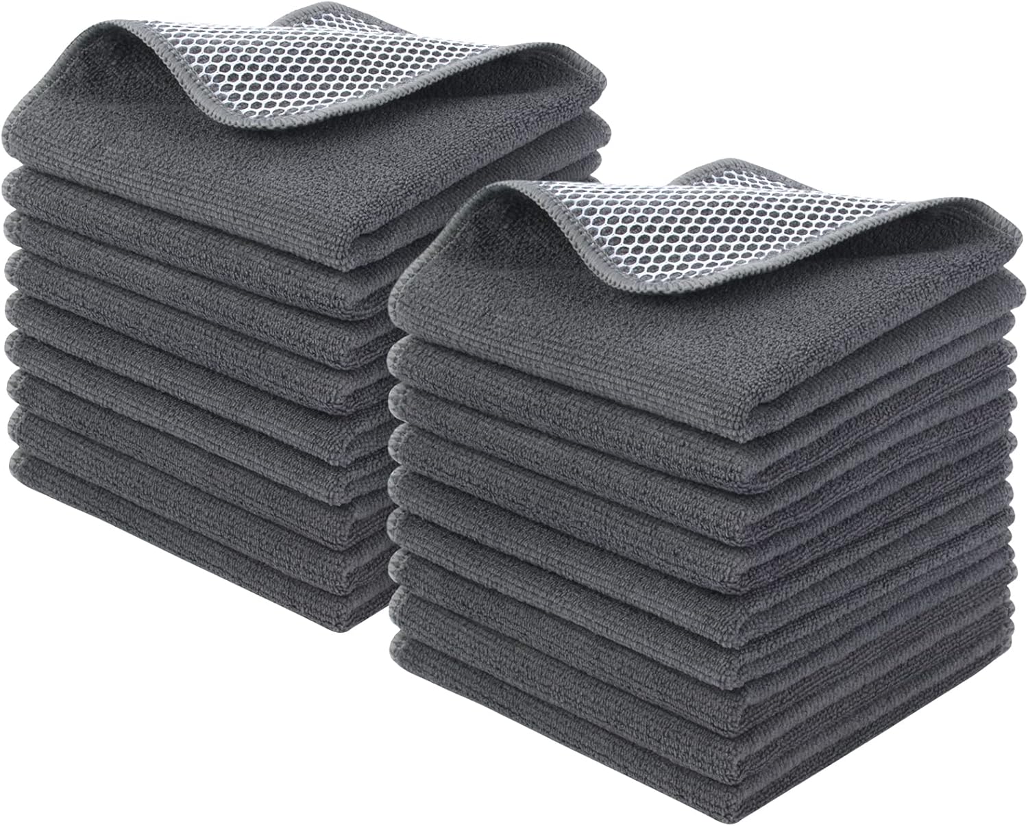 KinHwa Kitchen Washcloths for Dishes Absorbent Microfiber Dish Cloths Quick Dry Dish Rags with Poly Scour Scrub Side Ideal for Kitchen Cleaning (Gray, 12inchx12inch 18 Pack)