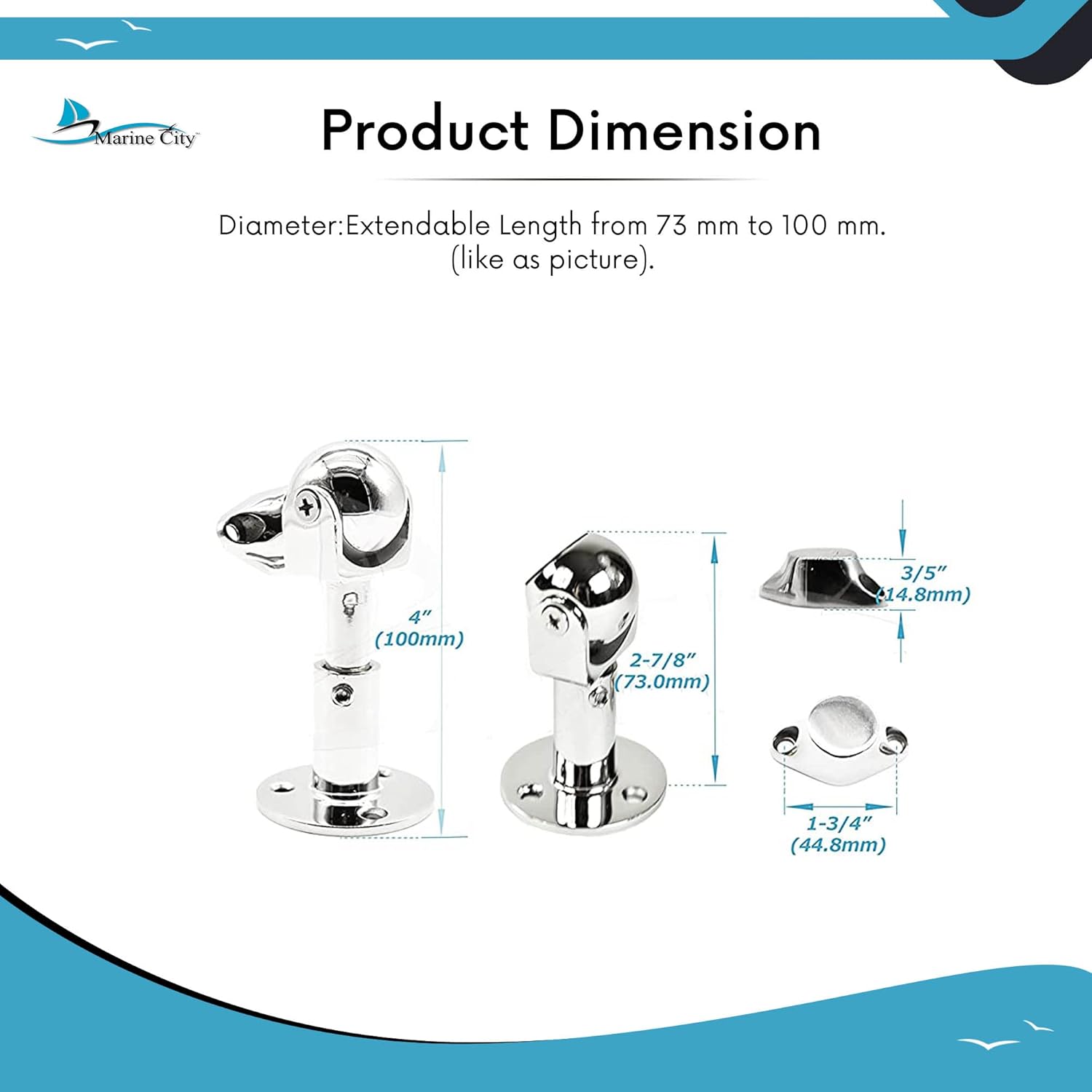 MARINE CITY Magnetic Ball Door Window Stopper Set, 316 Stainless Steel, Corrosion-Resistant, Holds 4kg, Water-Resistant, Extendable 73mm-100mm, Ideal for Boats, Yachts, Ships
