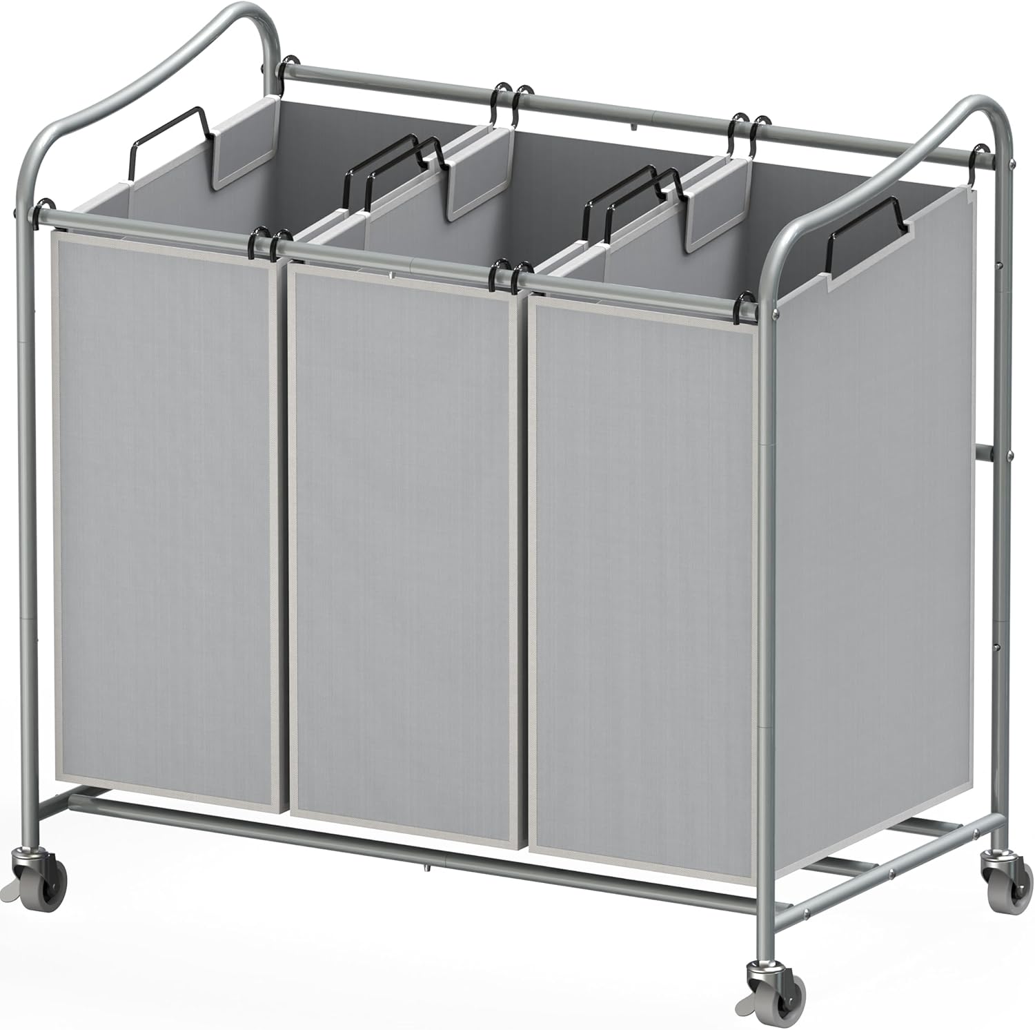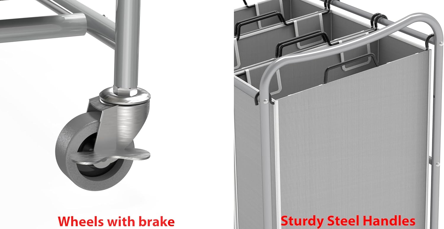 Simple Houseware Heavy-Duty 3-Bag Laundry Sorter Cart, Silver