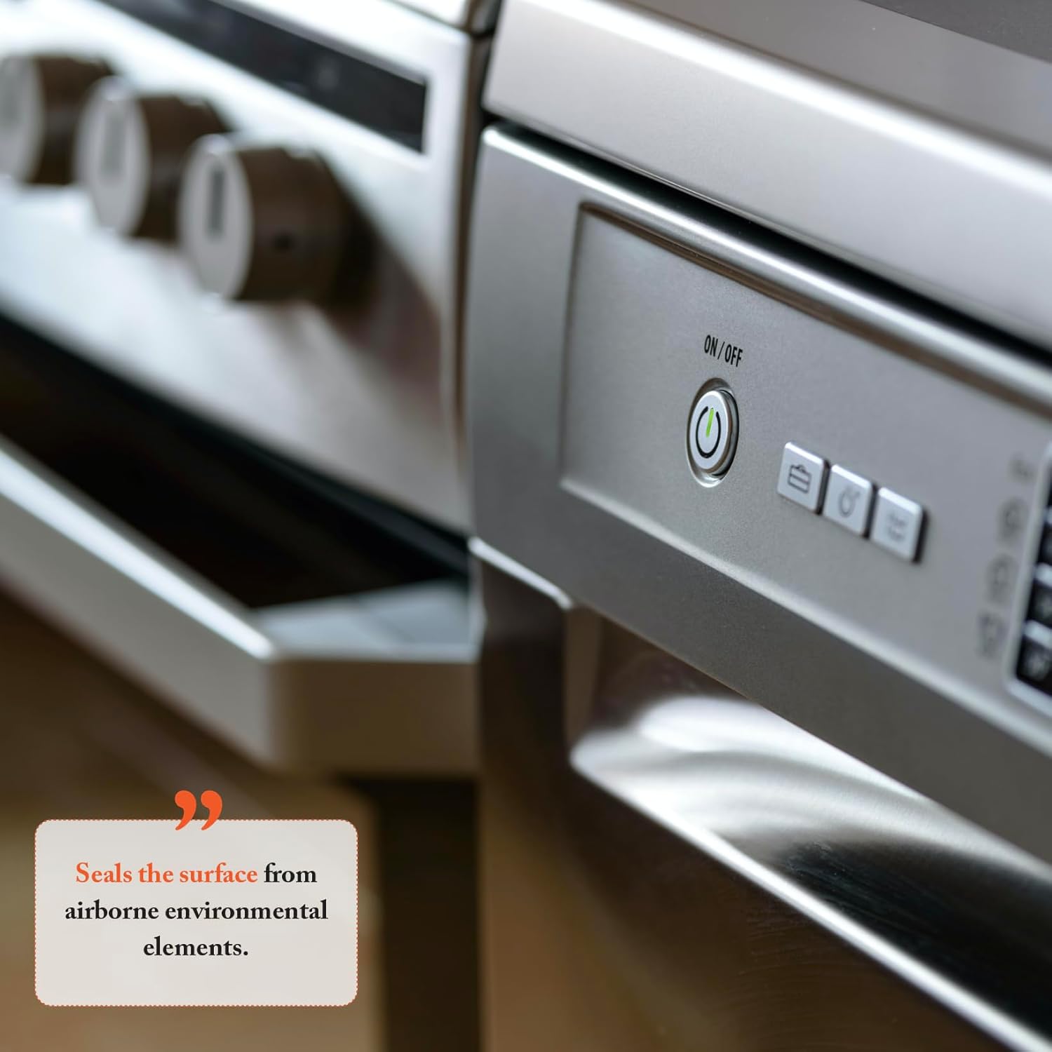 - The micro-thin oil based layer of this stainless steel refrigerator cleaner seals the surface from airborne elements, moisture, and UV light. Virtually eliminating everyday fingerprints, grease, dirt, and smudges, this stainless cleaner leaves behind a gorgeous streak free shine