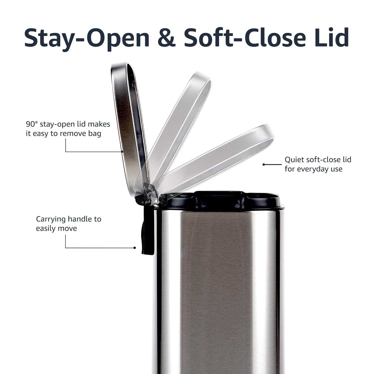 - EVERYDAY USE: Stay-open lid, removable bucket, and carry handle ensure easy, convenient trash disposal