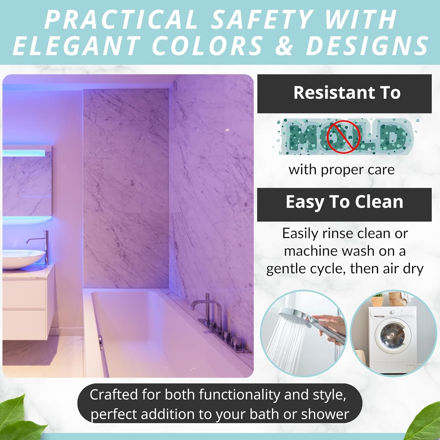 - Modern, Sturdy & Made To Last: Complement your stylish bath rugs décor with an eye-catching bath mat in many color variations. Place it in the washing machine, to keep it fresh, clean and hygienic for a long time!