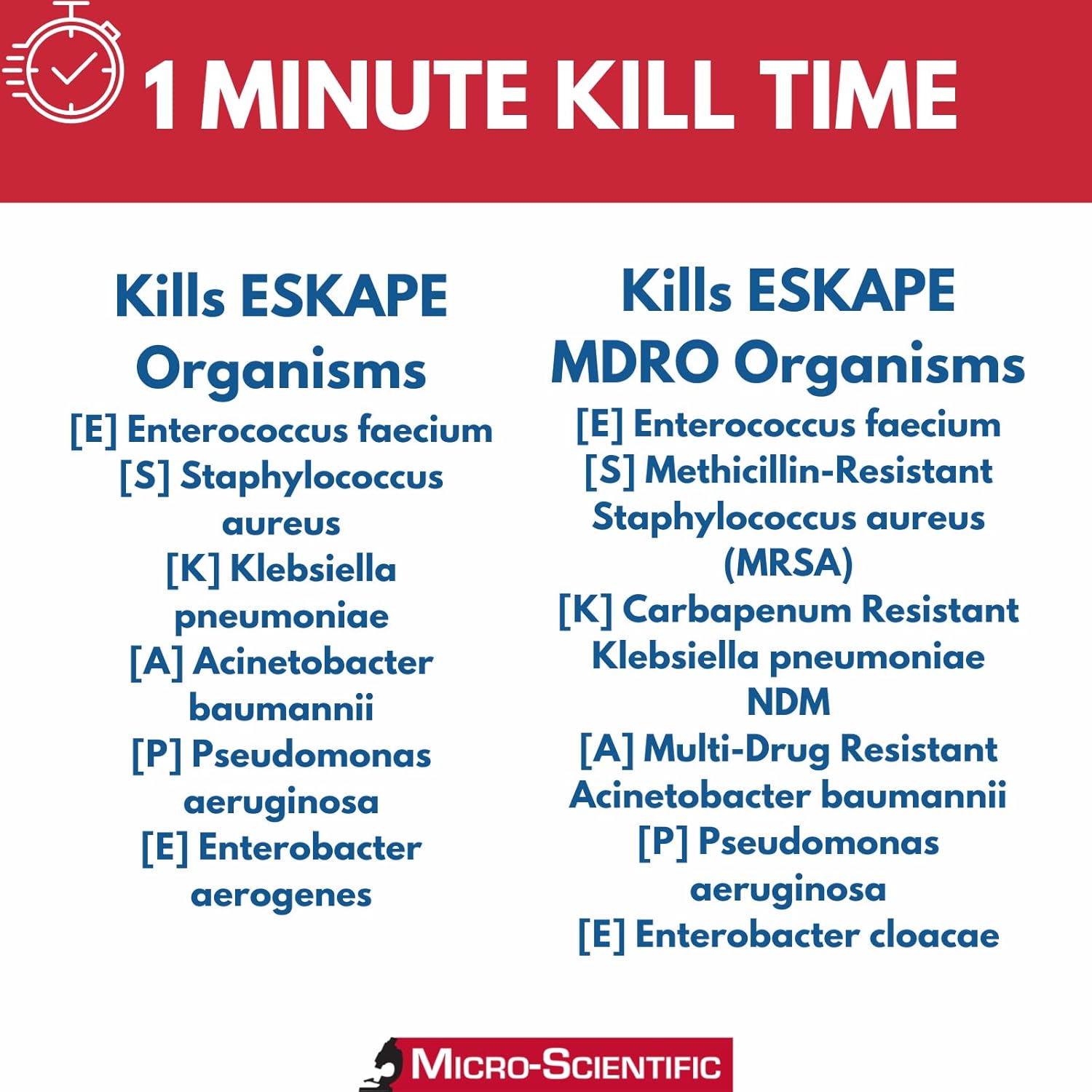 - KILLS TESTED ORGANISMS IN 30 SECONDS TO 1 MINUTE - Kills Human Immunodeficiency Virus (HIV-1), Hepatitis B (HBV) and Hepatitis C (HBC) B in 30 seconds. Kills Influenza A Virus (H1N1 and H3N2), Norovirus, Rotavirus, Salmonella enterica, Staphylococcus aureus, Escherichia coli in 1 minute. Kills TB in 2 minutes