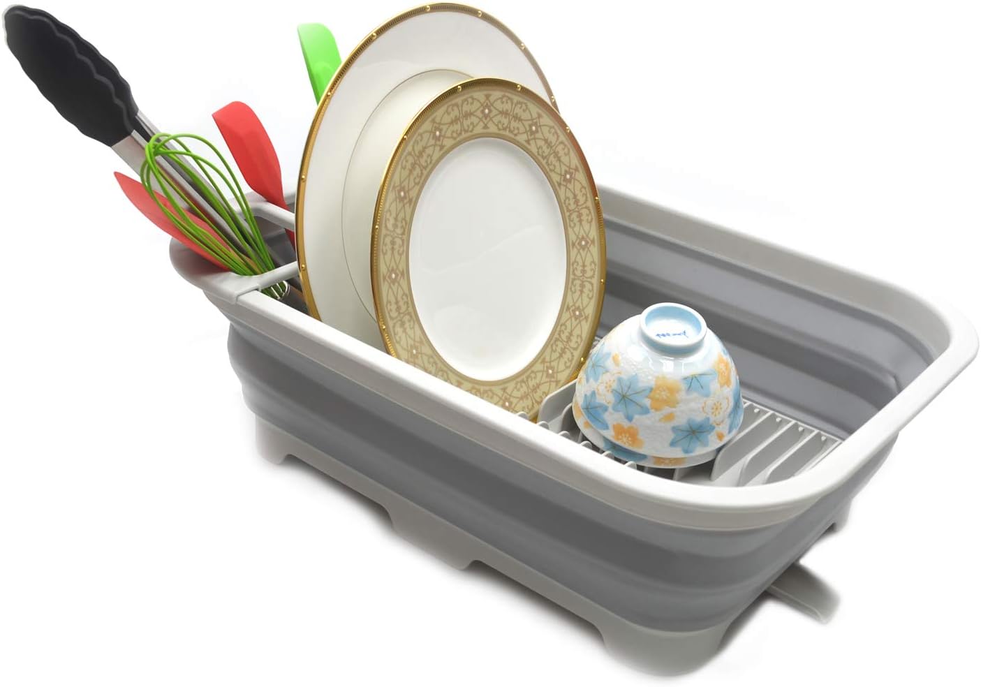 SAMMART 12L (3.17 Gallon) Collapsible Dish Drainer with Swivel spout - Foldable Drying Rack Set - Portable Dinnerware Organizer - Space Saving Kitchen Storage Tray (Grey)