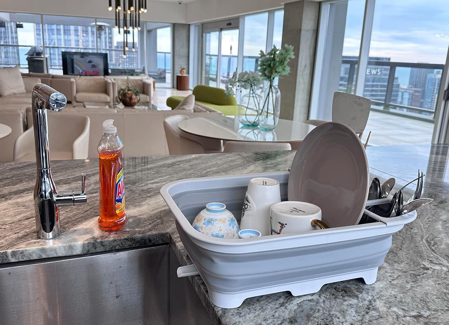 - Perfect storage and draining dinnerware and glasswares. Suitable for both indoors & outdoor uses, such as camping, BBQ and campsite cleanup.