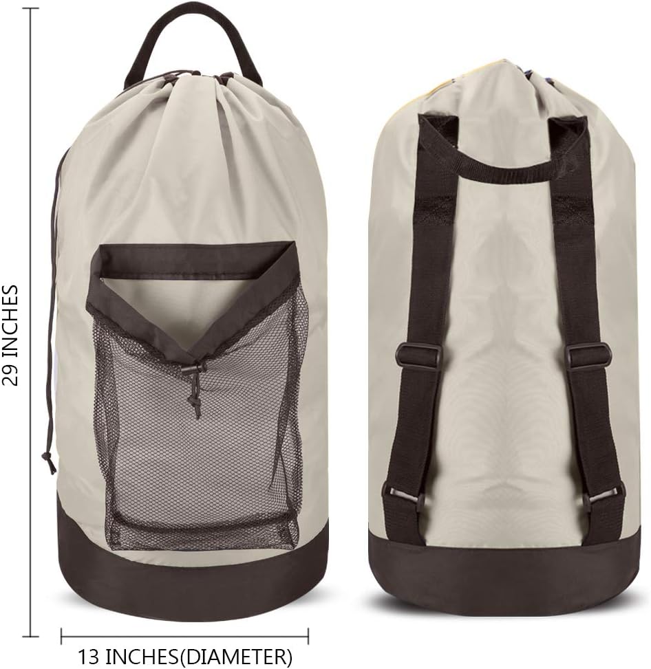 - USE AS HANGING HAMPER - Hang this laundry backpack on the wall or door as hanging laundry hamper with the reinforced hanging loop on the bag to collect dirty laundry. Suitable for college, camping and home.