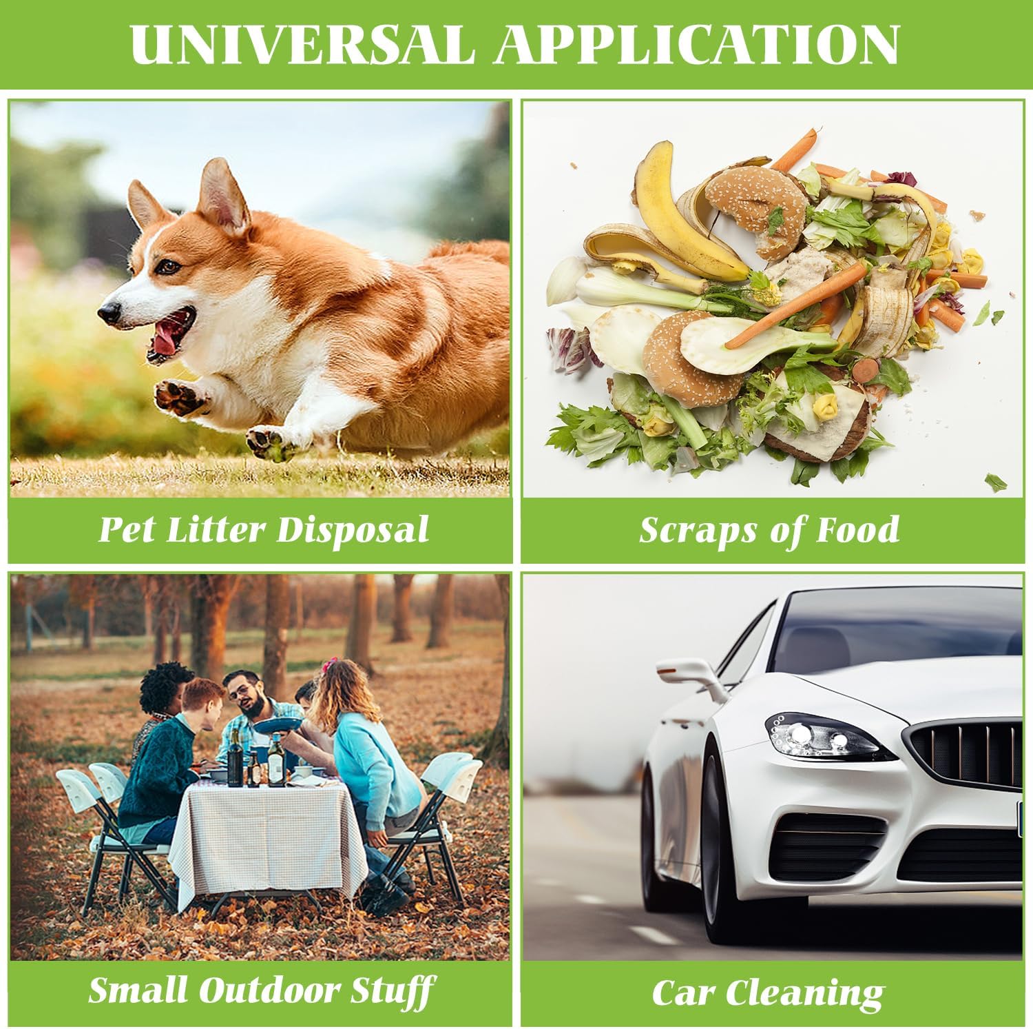 - MULTIPURPOSE: This bag is designed not only for indoor use (for office, kitchen, living room, bedroom, bathroom, diaper disposal, paper shredder etc) but also for outdoor applications (cat litter, dog waste, car trash etc).