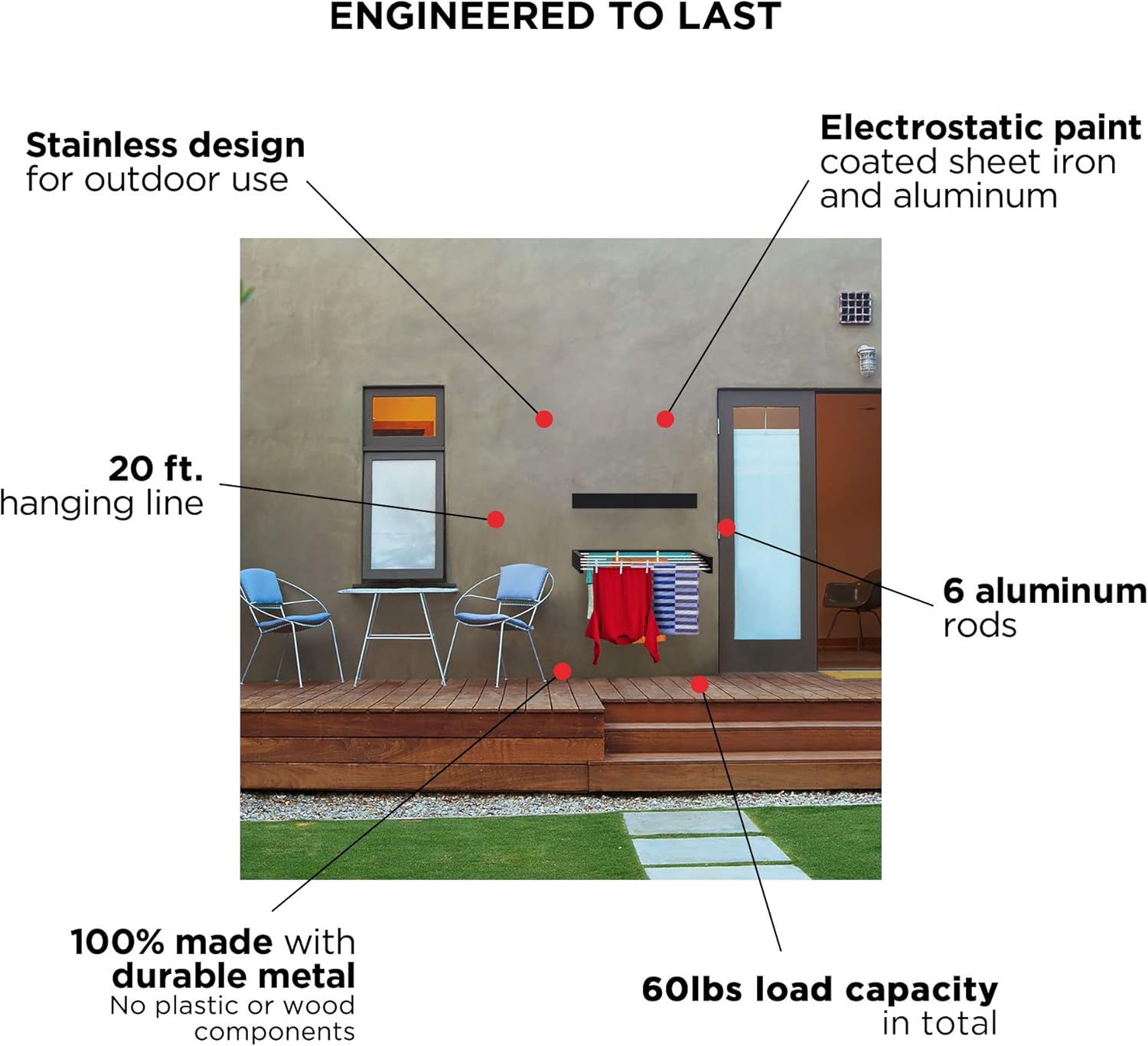 - INDOOR & OUTDOOR: Stainless steel and aluminum components make it perfect for patios, balconies, RVs as well as laundry rooms, bathrooms, hotel and dorm rooms.