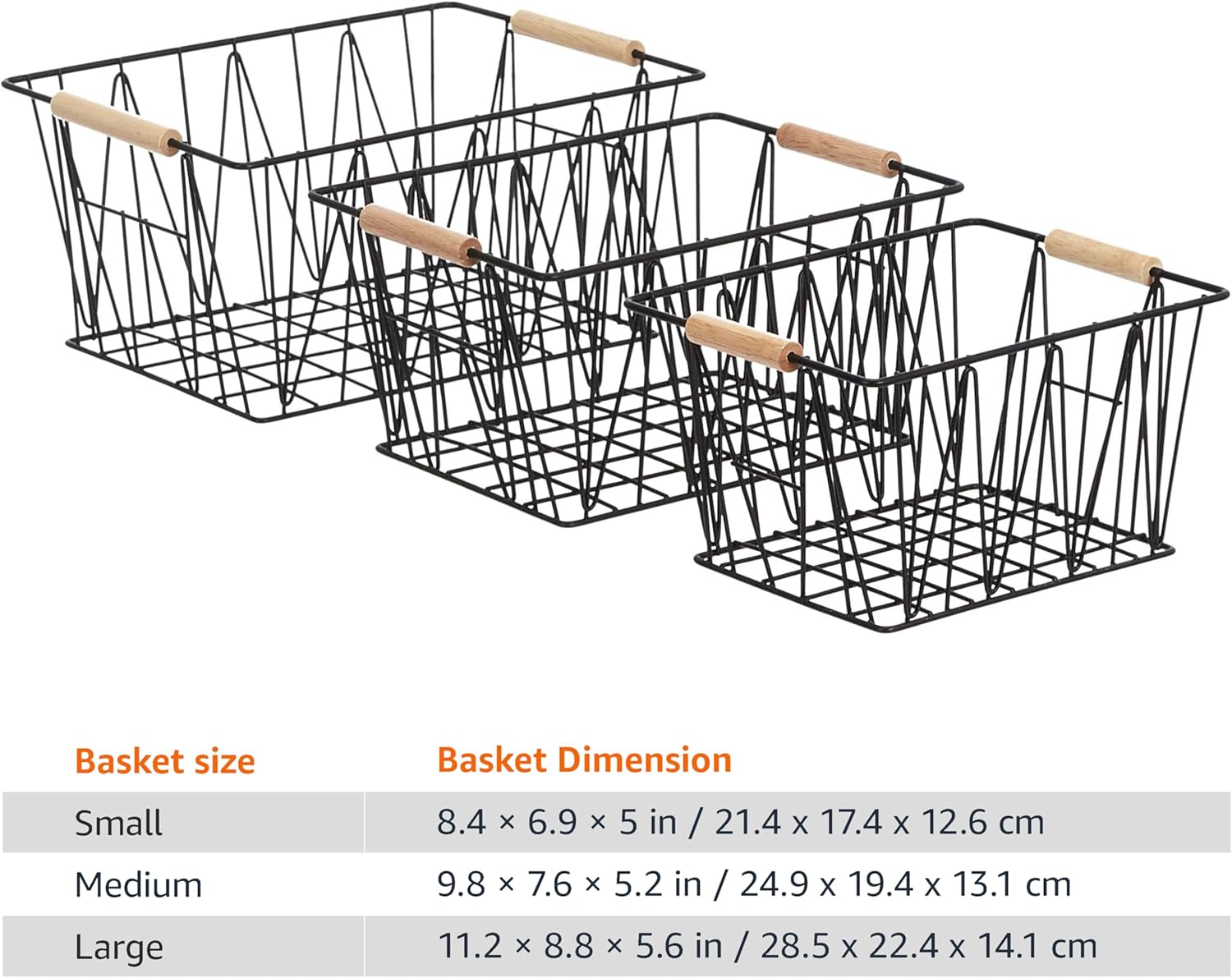 Amazon Basics Rectangular Wire Storage Baskets, Set of 3, Standard, Black