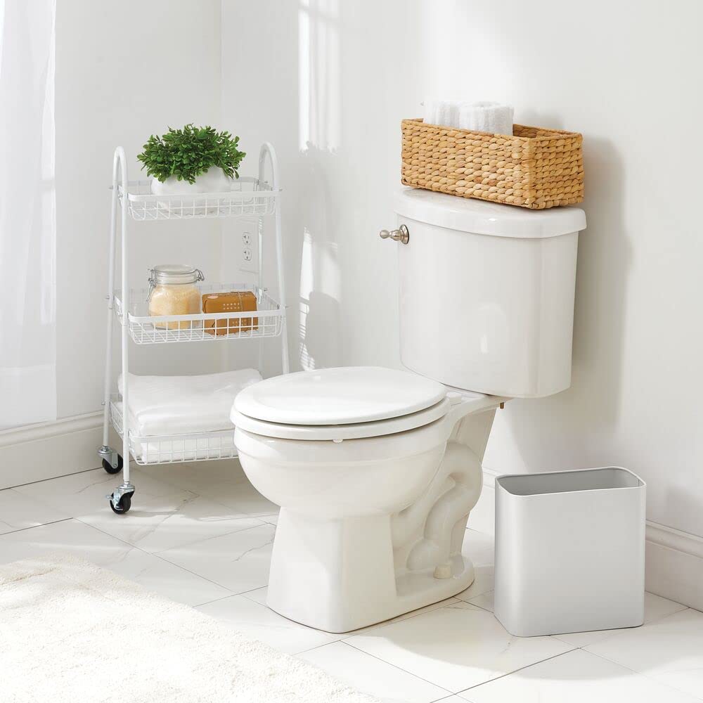 mDesign Small Metal 2.4 Gallon Trash Can Wastebasket Garbage Bin for Bathroom, Light Gray, Pack of 1