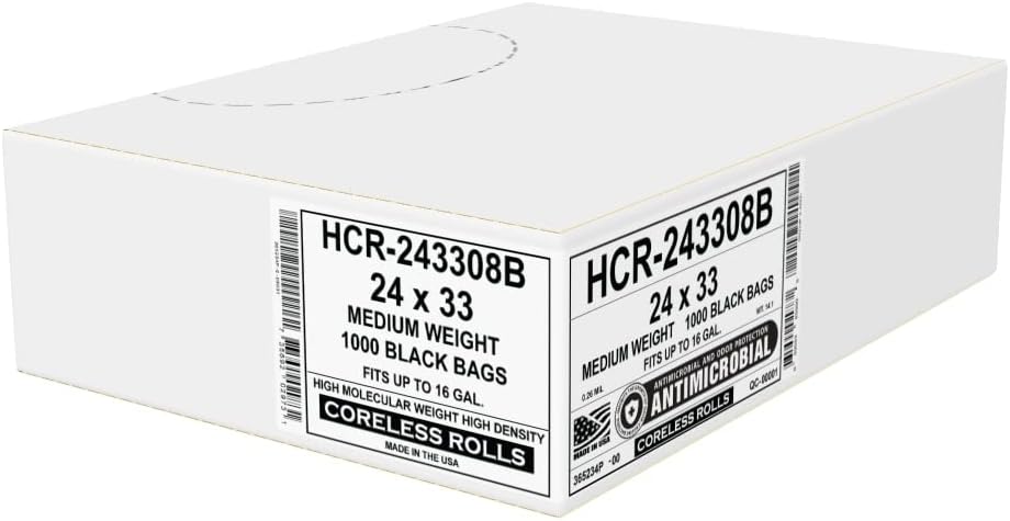 Aluf Plastics High Density Trash Bags, 16 Gallon, 1000 Count, 8 Micron (eq), 24" x 33", Black, for Bathroom, Office, Industrial, Commercial, Janitorial, Municipal, Recycling