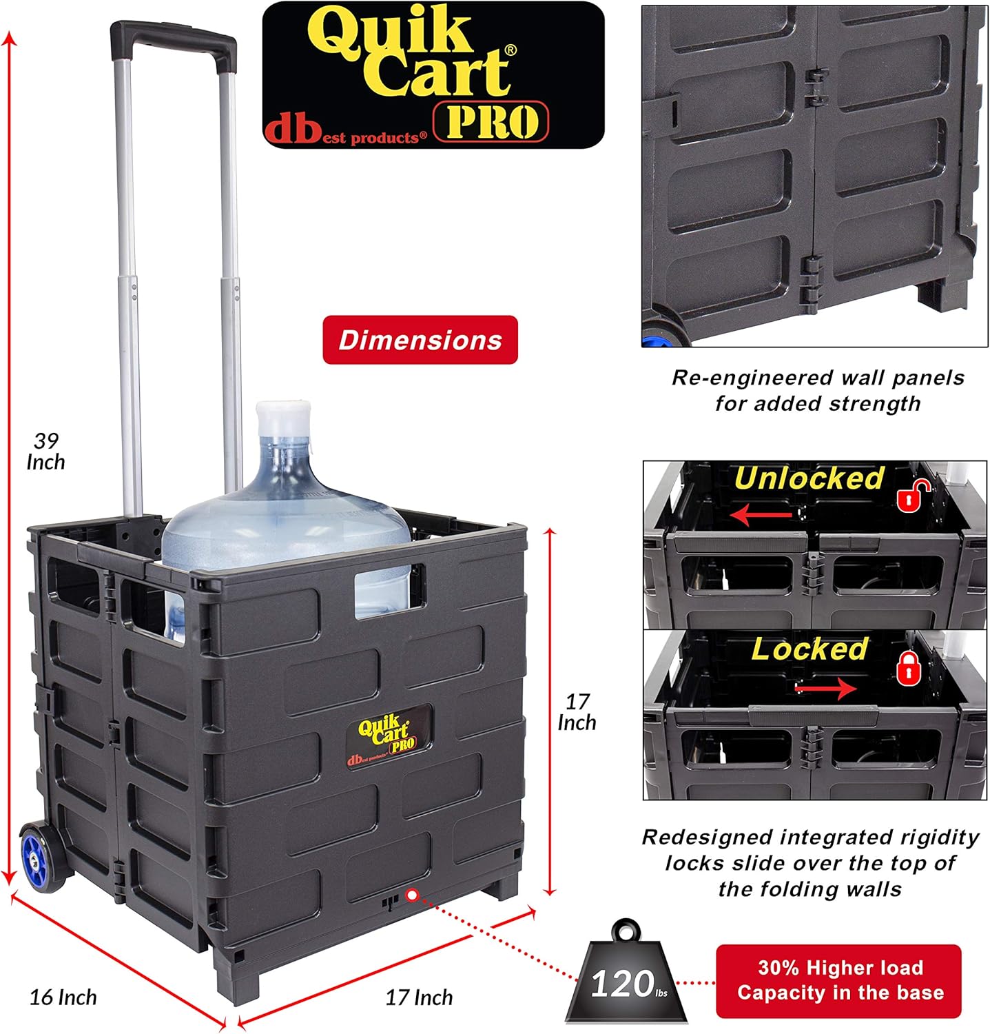 - COLLAPSIBLE: Handcart with an upgraded retractable telescopic handle. Collapses to 3" and expands to 17. 5". Load it full of boxes, baskets, bins, crates, all kinds of supplies including files & paper, heavy books or just light but bulky items.