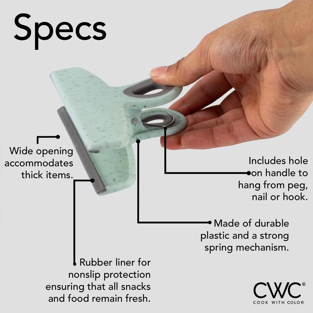 - Bag clips are one of those things you never have enough of, invest in a set of durable, long lasting, soft touch, Cook with Color chip clips and organize your home and kitchen.