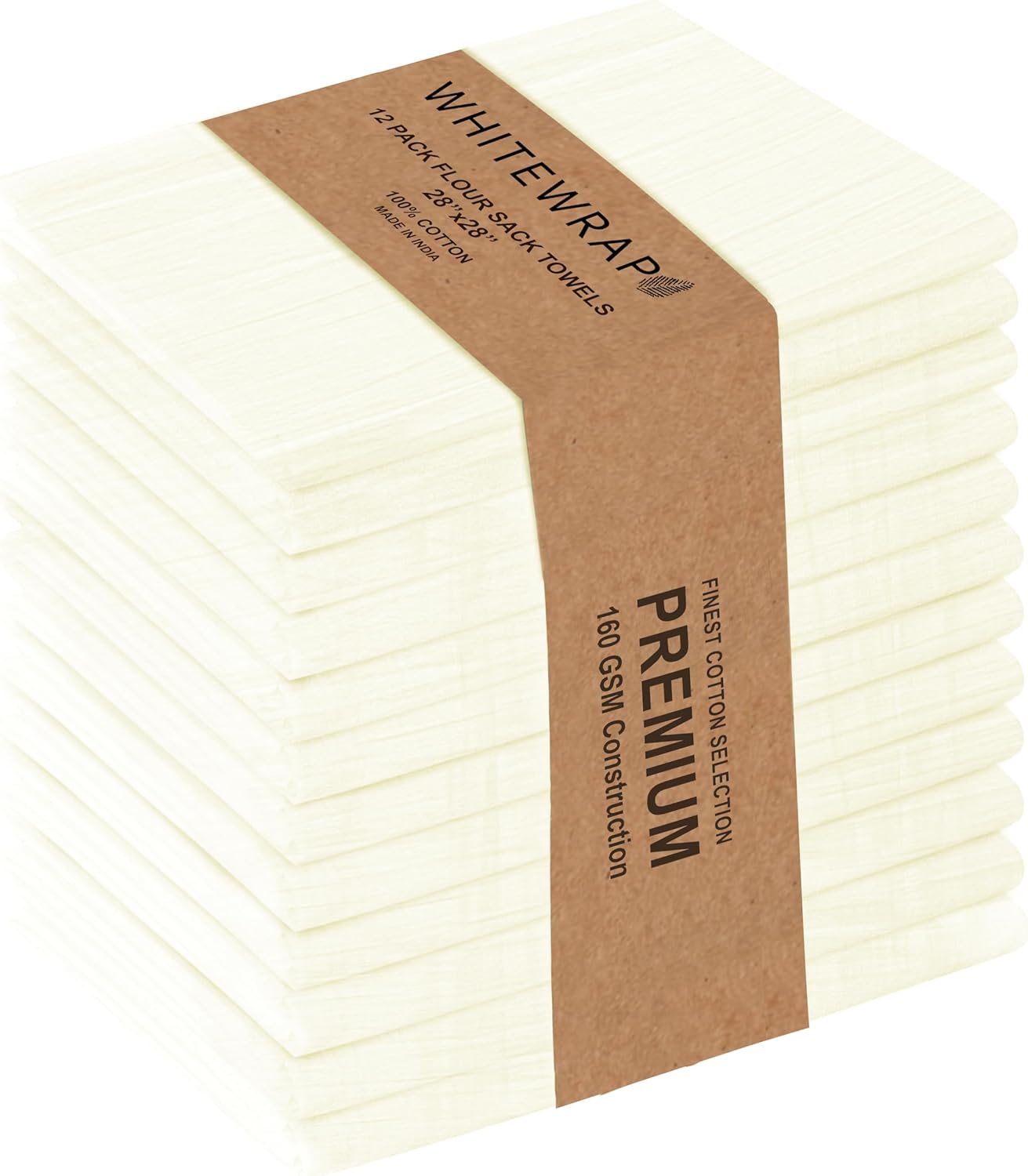 WHITEWRAP Flour Sack Towels| Tea Towel for Crafts| Kitchen Dish Cotton Blank Towel for Embroidery|Baking Bread Proofing Linen Cover| Thick Absorbent Quick Dry|12Pack 28"x28" Natural