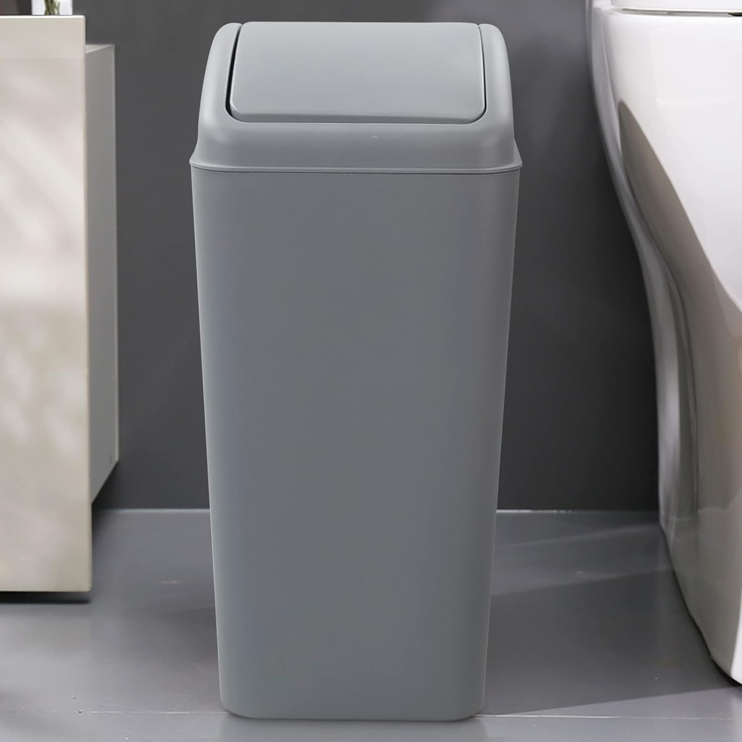 4.2 Gallon Plastic Swing Top Trash Can with Lid, Covered Swing Top Waste Basket, Gray