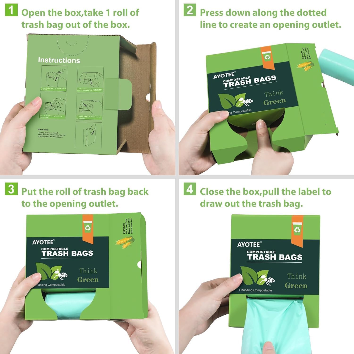 - Box Dispenser Design: Small compost bags 3 gallon are packed in a very delicate and light way that is convenient to store or carry. In terms of detail, the break-point design makes it is easy to separate them and avoid the trouble of tearing