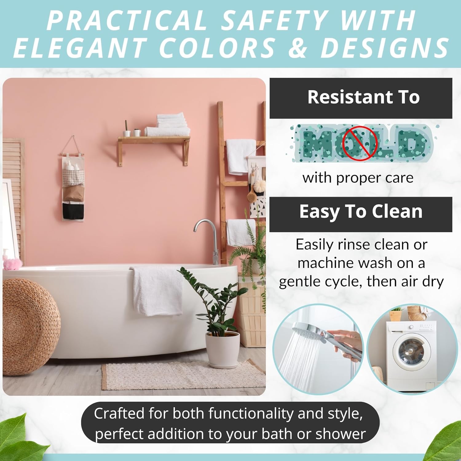 - Modern, Sturdy & Made To Last: Complement your stylish bath rugs décor with an eye-catching bath mat in many color variations. Place it in the washing machine, to keep it fresh, clean and hygienic for a long time!