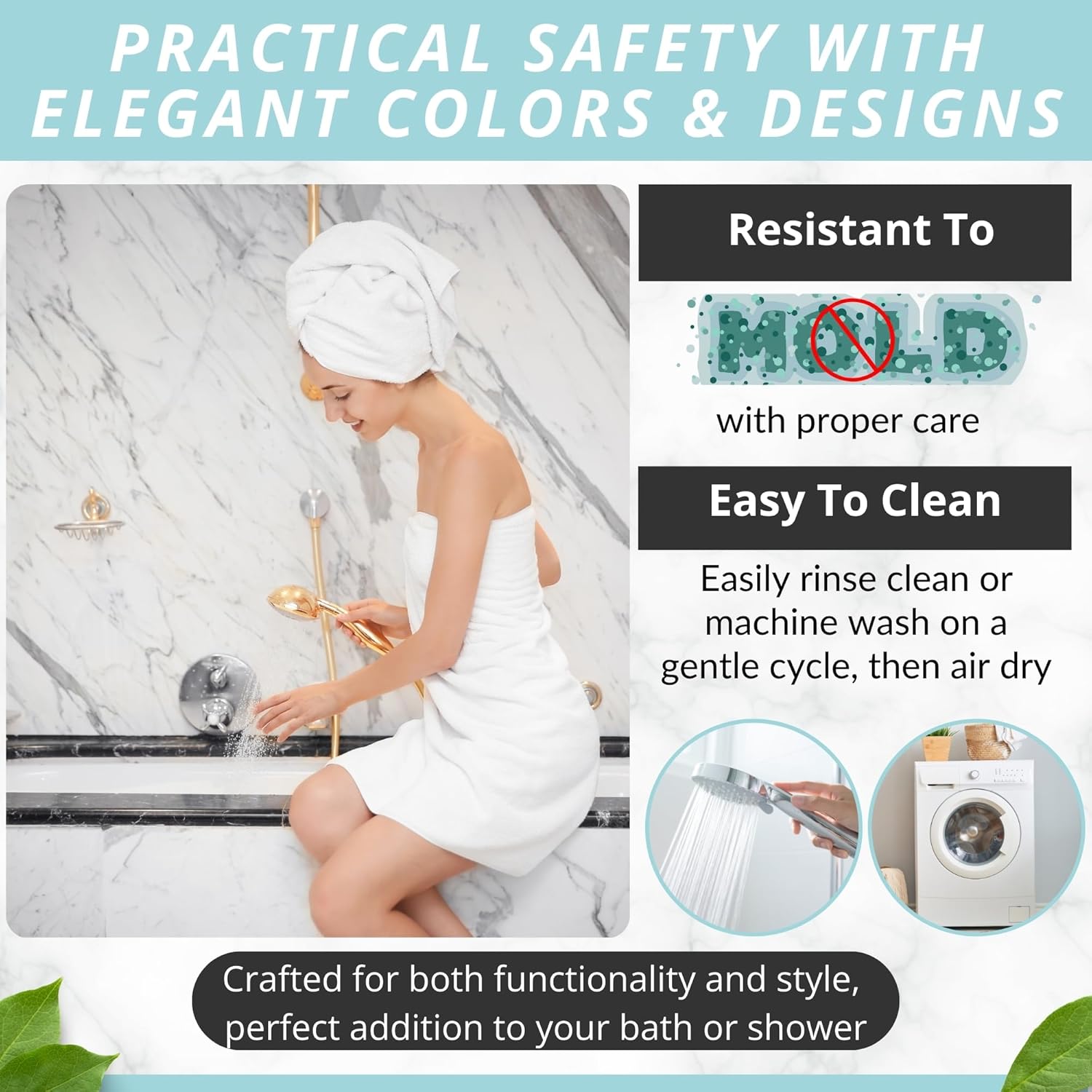 - Modern, Sturdy & Made To Last: Complement your stylish bath rugs décor with an eye-catching bath mat in many color variations. Place it in the washing machine, to keep it fresh, clean and hygienic for a long time!