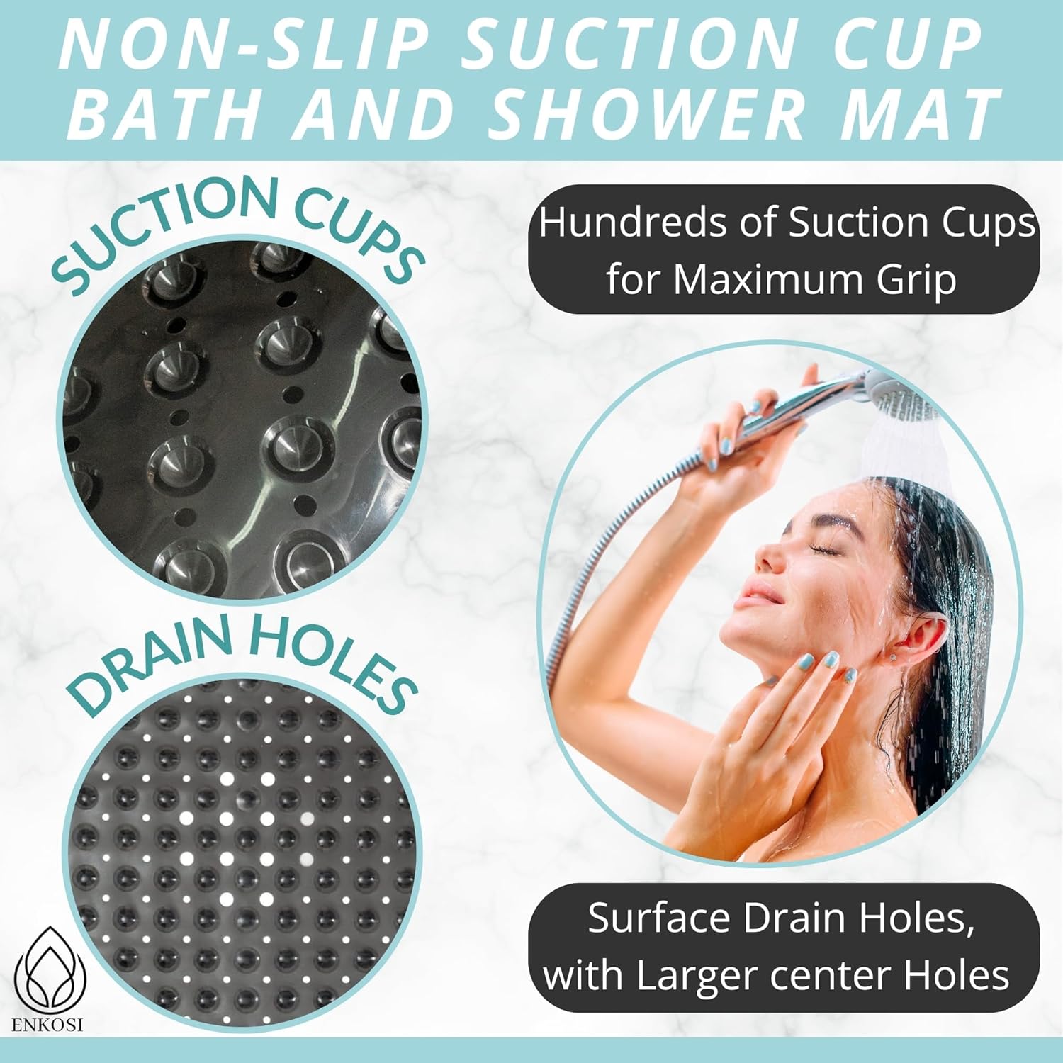- Great For The Elderly, The Babies & Young Children: Nonslip & generously sized, the Enkosi bath mat ensures the safe bathing & showering of your baby, toddler, as well as your elderly parents or grandparents.