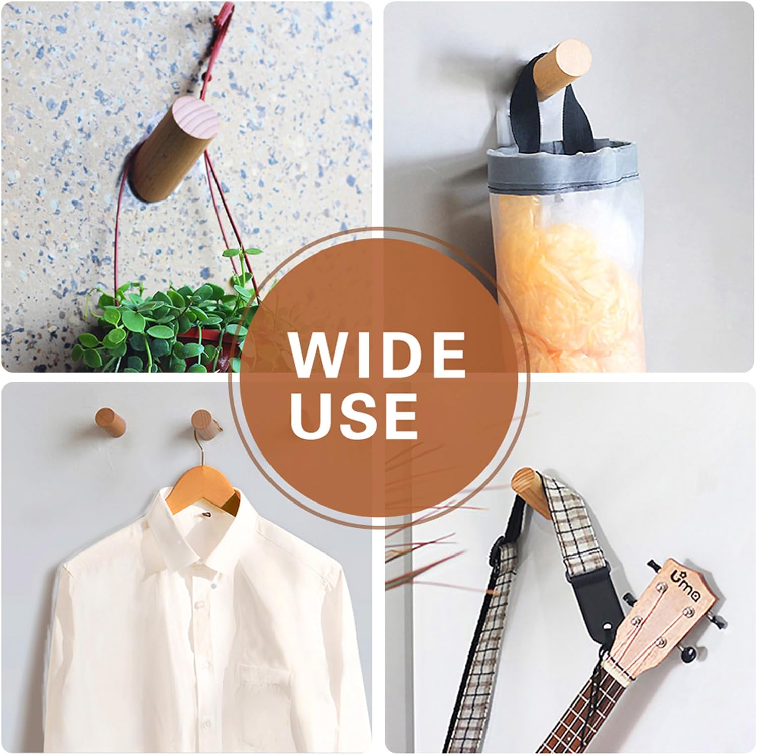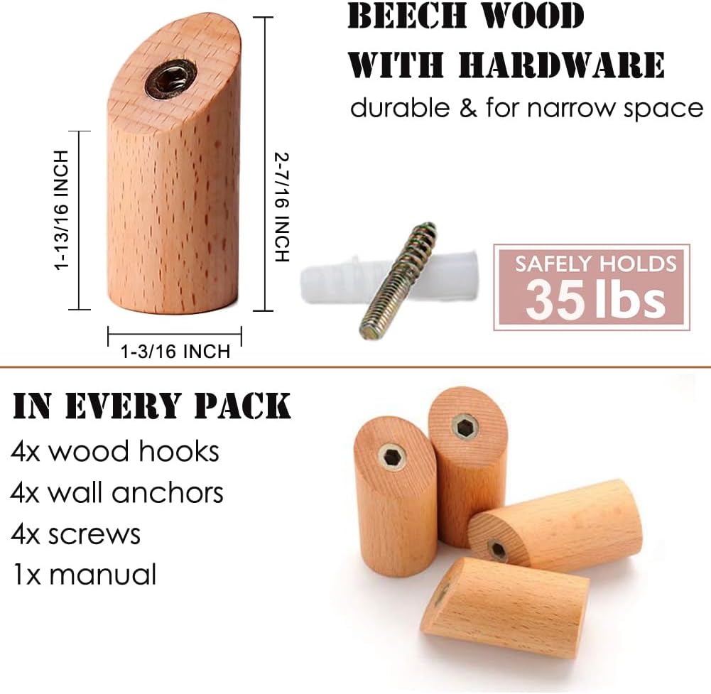 - MODERN WOOD HOOK: 100% beech wood wall hook, nice wood grain, handcrafted with care for long lasting use, finished with natural wood oil, which is healthy and friendly, and better protects the wooden hooks. Simple wood hook, but upgrade living to any home