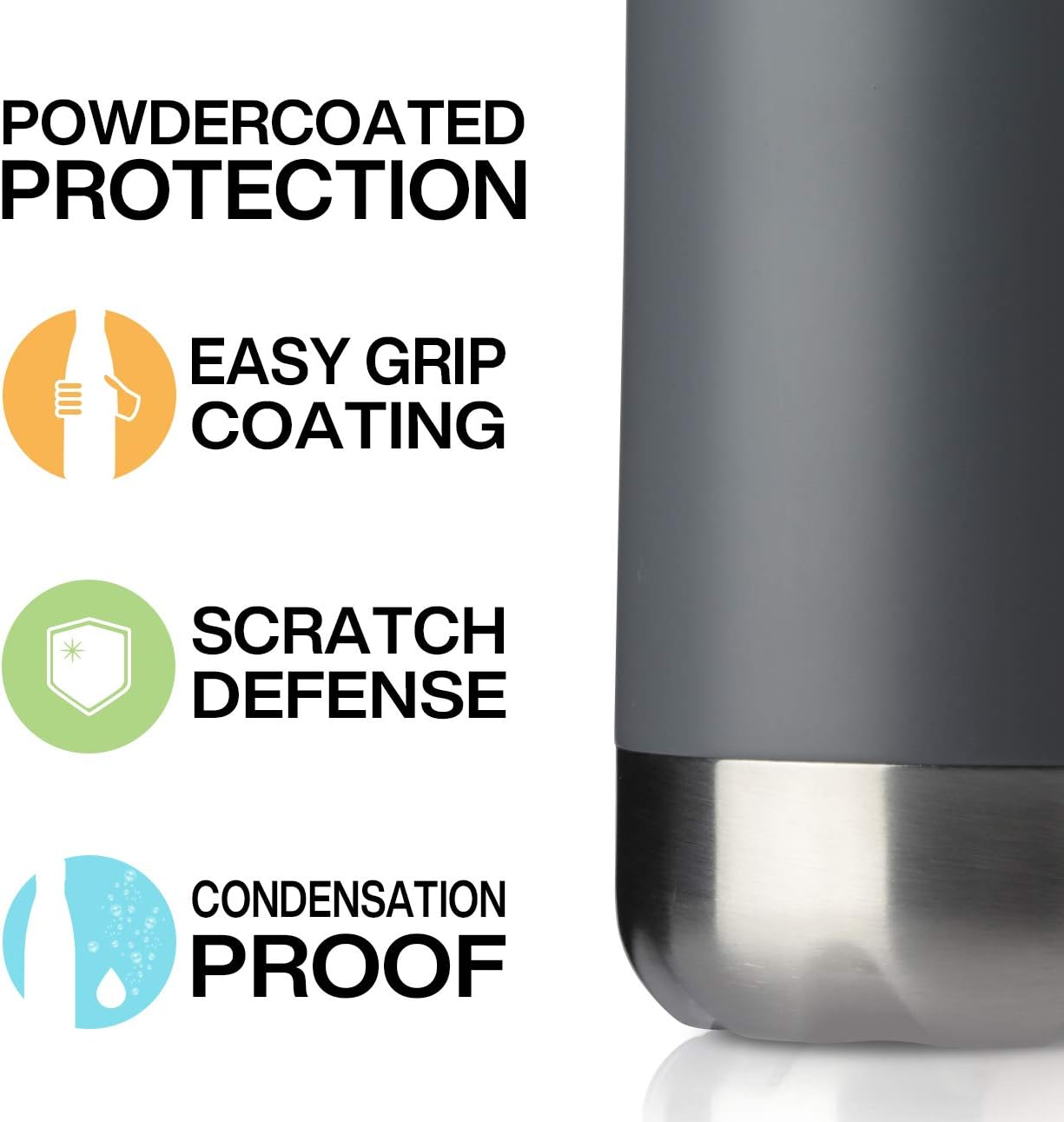 - KEEPS COLD 24 HRS, HOT 12 HR:Do you like cold drinks? hot coffee? Our double vacuum insulated stainless steel bottles allow you to enjoy cold water, juice, milk, beer or whatever you like! On cold days, you can pour in your favorite hot drinks, such as coffee or tea!your cold drink will stay perfectly chilled up to 24 hours or your coffee, tea or hot drink will keep hot for up to 12 hours. Enjoy a good day