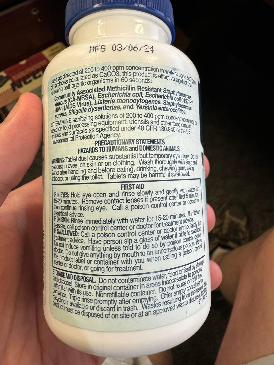 - RELIABLE SANITIZING SOLUTION FOR FOOD SERVICE AND HIGH-RISK ENVIRONMENTS β Steramine 1-G sanitizing tablets, combined with QT-10 test strips, deliver trusted, EPA-registered protection against infectious bacteria, HIV-1 (AIDS virus), and other harmful microorganisms. Ideal for use in restaurants, bars, commercial kitchens, catering operations, and food prep areas, these powerful tablets help ensure consistent sanitation of food contact surfaces, utensils, and equipment.