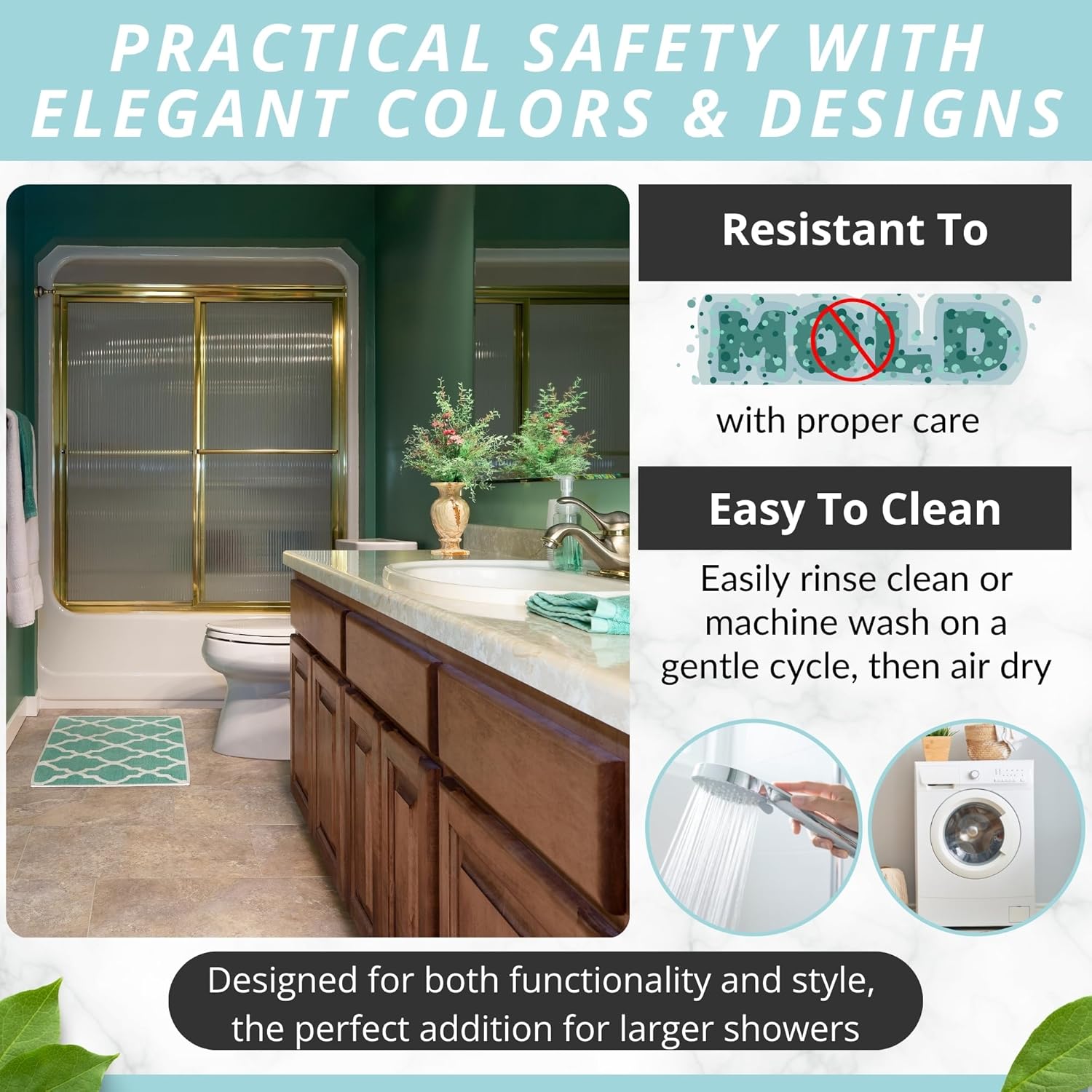 - Modern, Sturdy & Made To Last: Complement your stylish bath rugs décor with an eye-catching bath mat in many color variations. Place it in the washing machine, to keep it fresh, clean and hygienic for a long time!