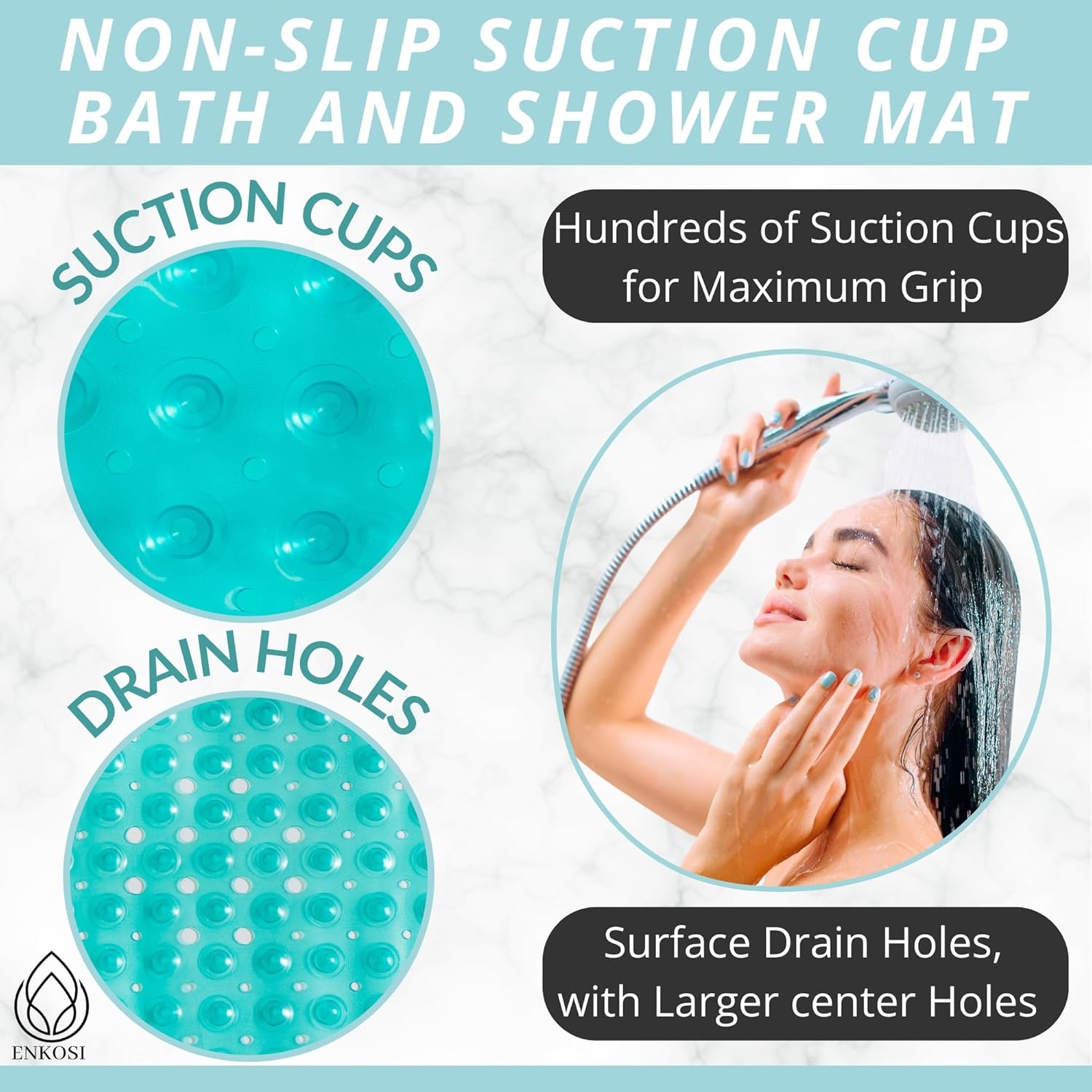 - Great For The Elderly, The Babies & Young Children: Nonslip & generously sized, the Enkosi bath mat ensures the safe bathing & showering of your baby, toddler, as well as your elderly parents or grandparents.