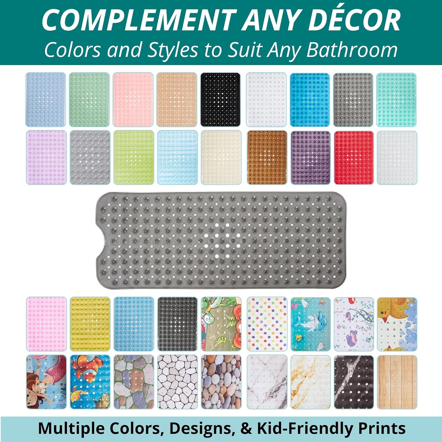 - Enjoy 360-degree Protection In or Out of Your Bathtub: with a premium manufacture bathmat, made of top standard anti slip material. It is a MAXIMUM grip tub/shower mat with 200 well-placed suction cups, for max sticking capacity.