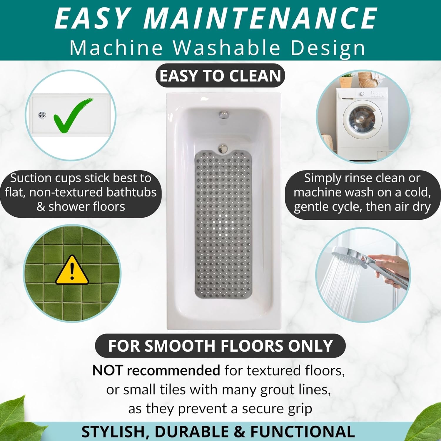 - You'll Love Our Bath & Shower Mat: We strive to offer you a great experience. This is why we back our product with our Lifetime Indestructible Warranty, to help you buy with confidence