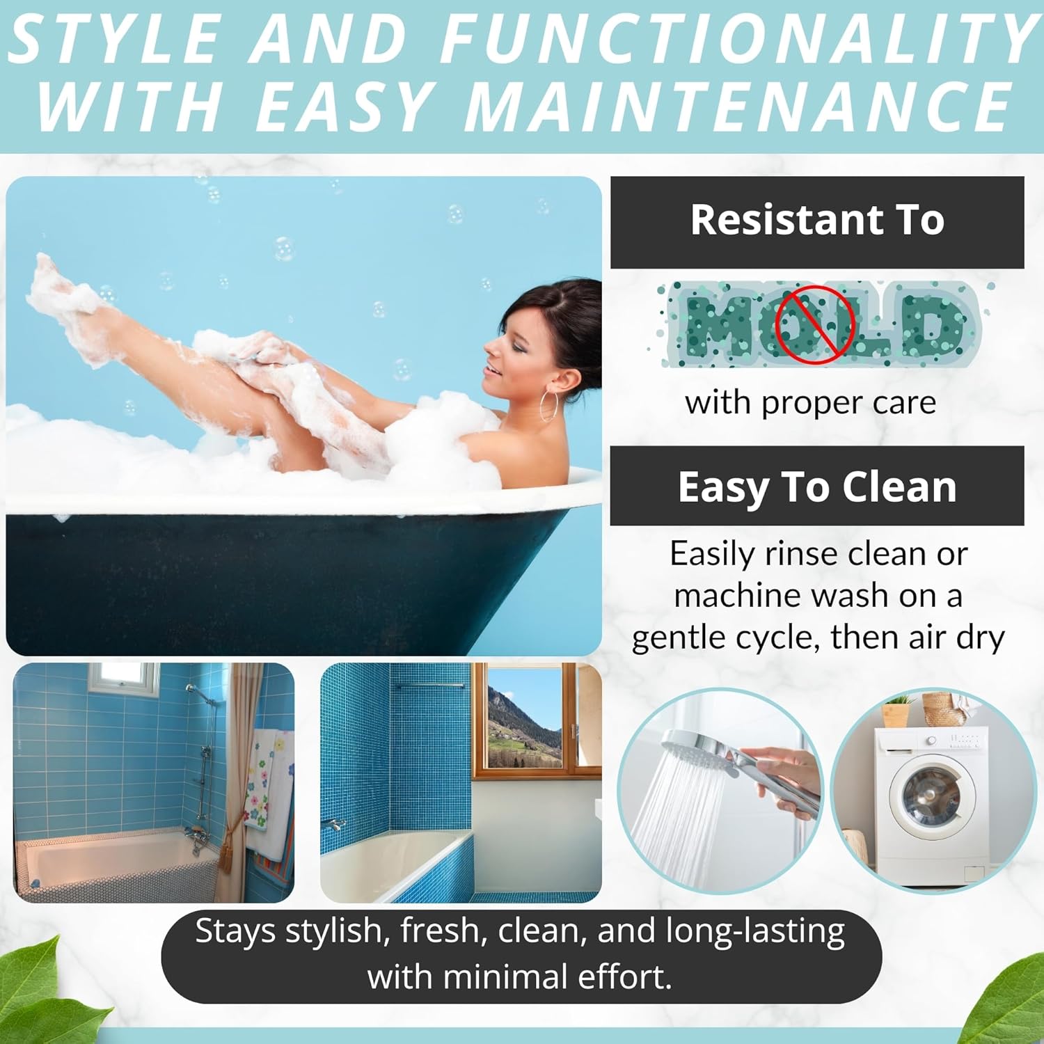 - Modern, Sturdy & Made To Last: Complement your stylish bath rugs décor with an eye-catching bath mat in many color variations. Place it in the washing machine, to keep it fresh, clean and hygienic for a long time!