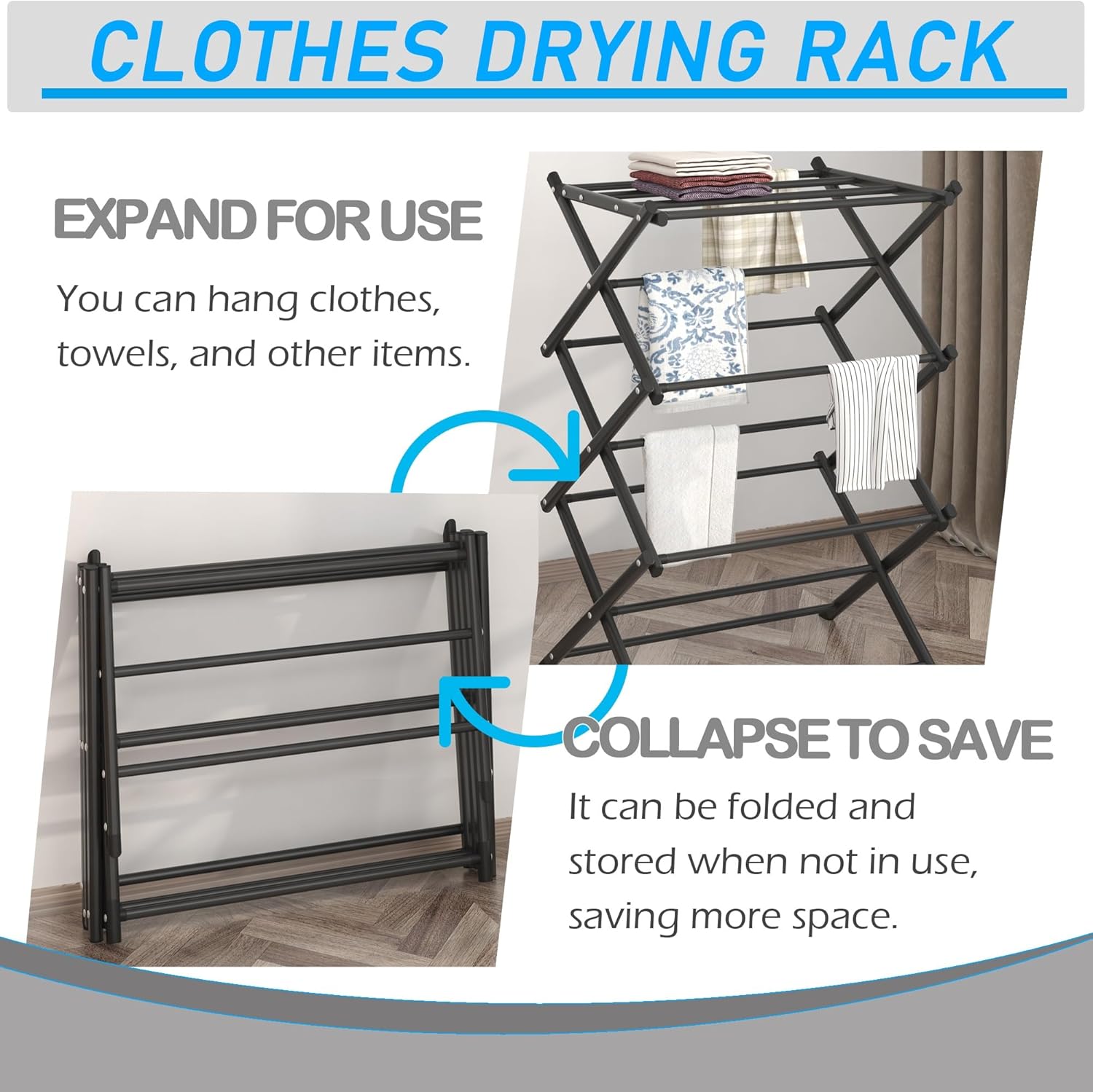 - Collapsible drying rack for air-drying clothes and saving electricity consumption