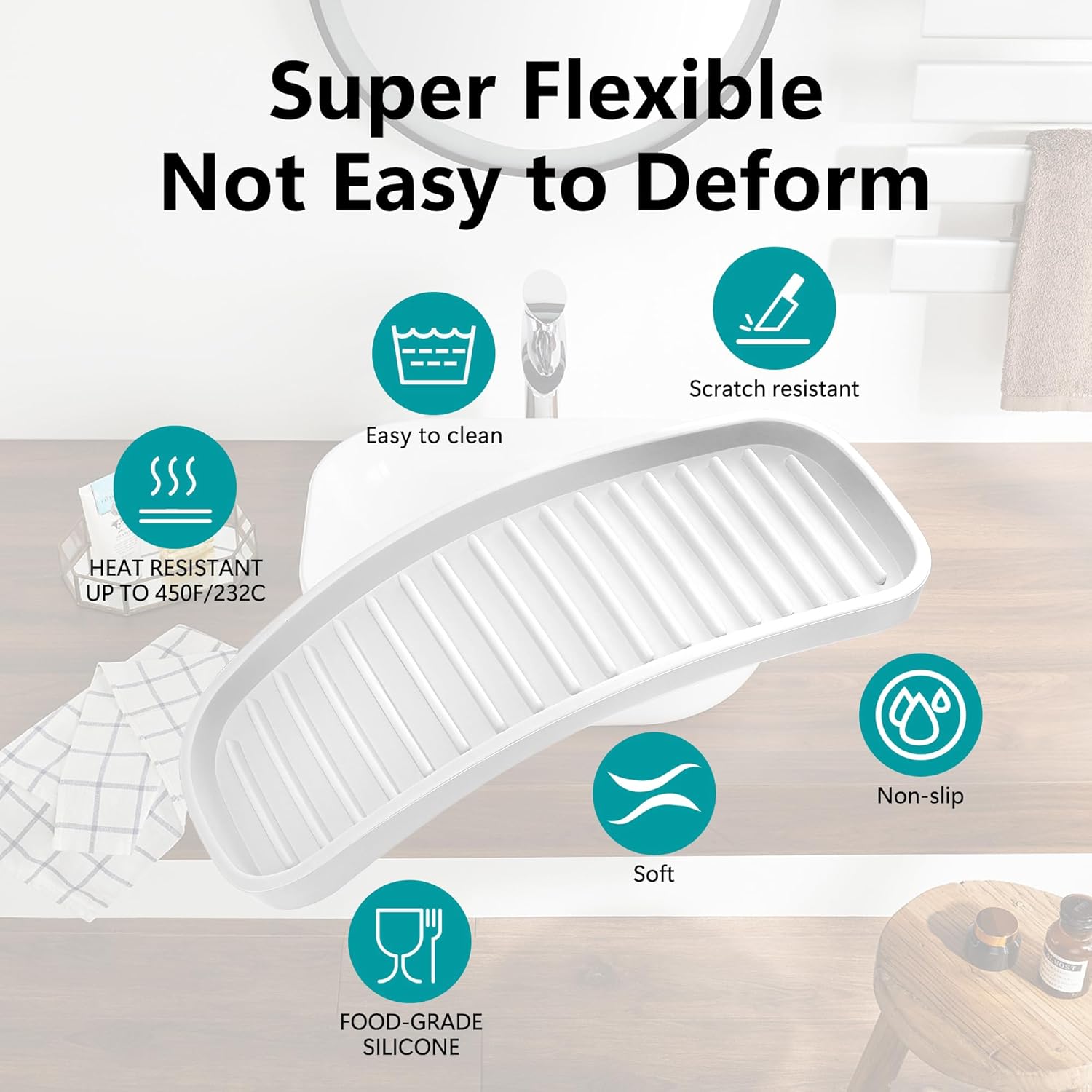 - Premium Silicone Material - Our silicone sink caddy is made of flexible silicone. This sink organizer is heat resistant up to 450F/232C, our kitchen sink organizer can be used safely with hot cooking utensils, BBQ tools or hot hair tools. Protect your counters and surfaces from heat. After use, simply wash it with a warm soapy water. Or simply toss into the dishwasher!