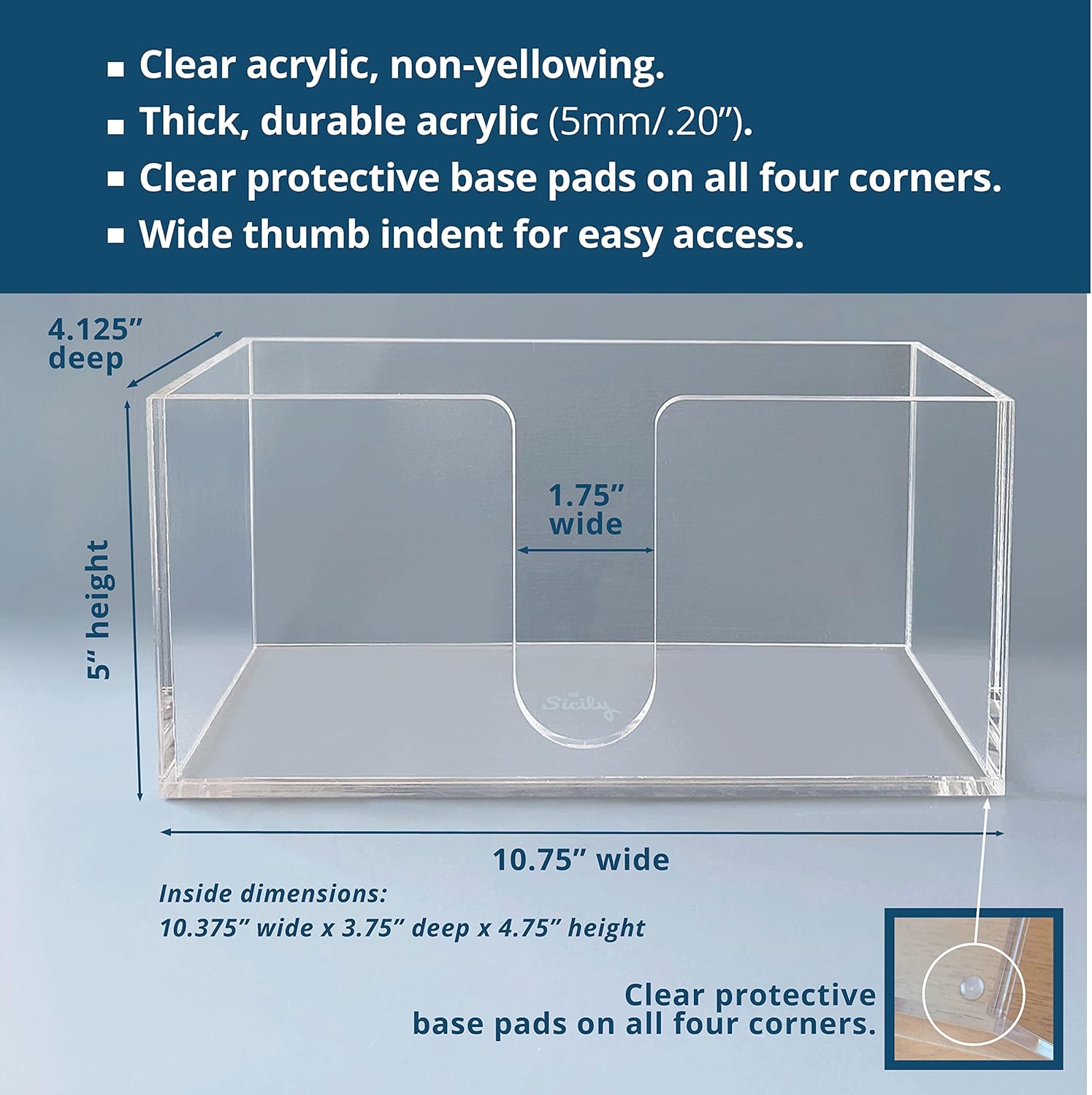 - ENCOURAGE GOOD HYGIENE among house guests or employees at your restaurant with the Sicily Disposable Hand Towel Holder. This Acrylic Guest Towel Holder tray for Bathroom and Kitchen presents fresh paper towels conveniently and fashionably. ORGANIZE with a countertop paper towel holder storage to keep areas tidy.