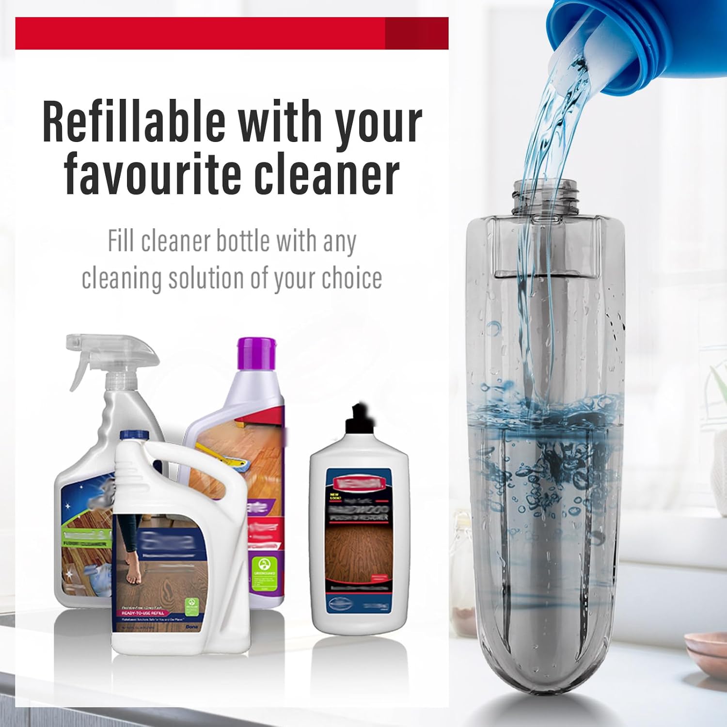 - ❤WARRANTY AND PACKAGE: 1 mop,1 refillable bottle(14 oz), 3 microfiber mop pads, and 1 scraper for heavy-duty scrubbing. If you have any questions, please contact us right away.