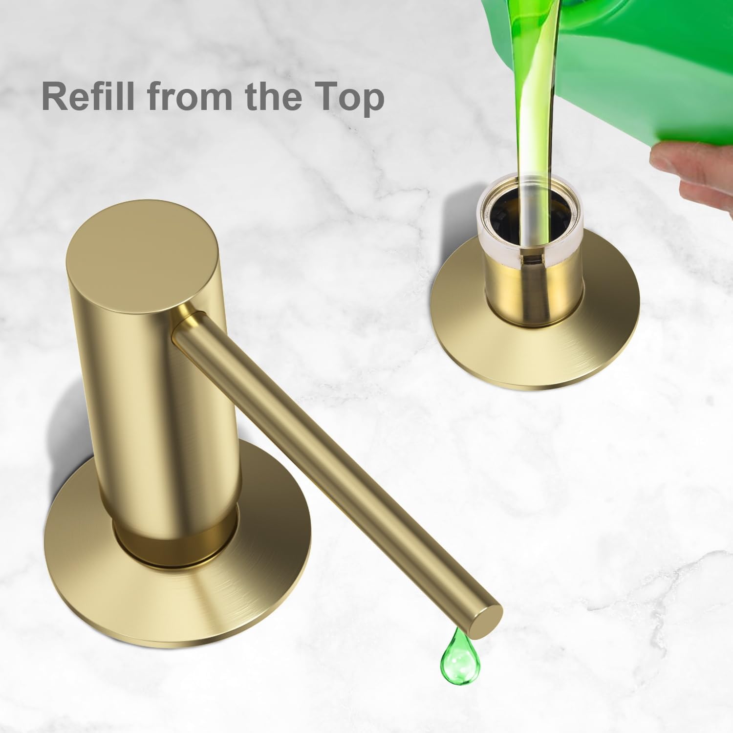 - ✔️ ABOVE THE COUNTER RE-FILL -- The soap dispenser for kitchen sink replacement with pull-out removable pump head makes refilling this sink soap dispenser a freeze. No more crawling under the sink.