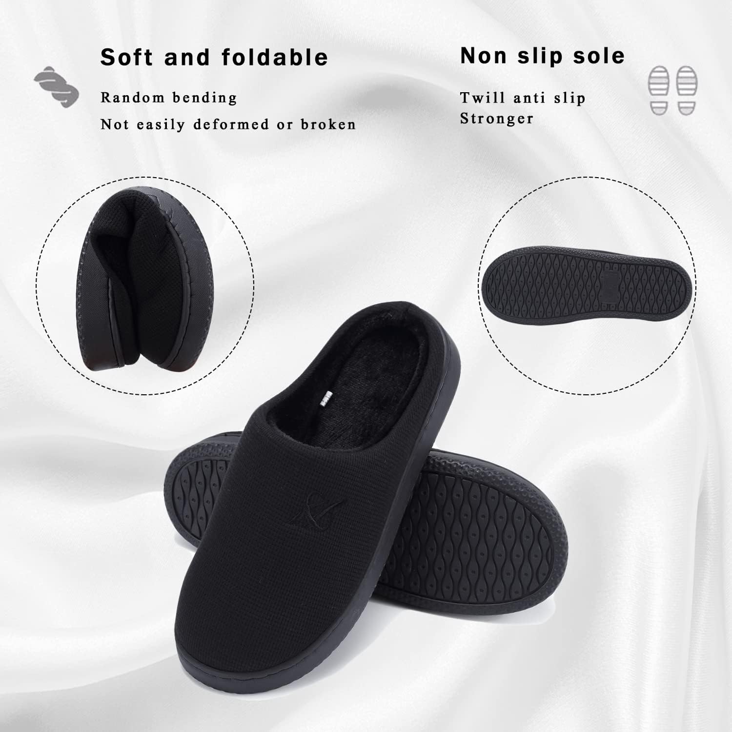 - Upper: This slippers uses high-quality fabric upper, combined with waffle woven surface design, has excellent breathability, moisture wicking function, and keep your feet dry and odorless