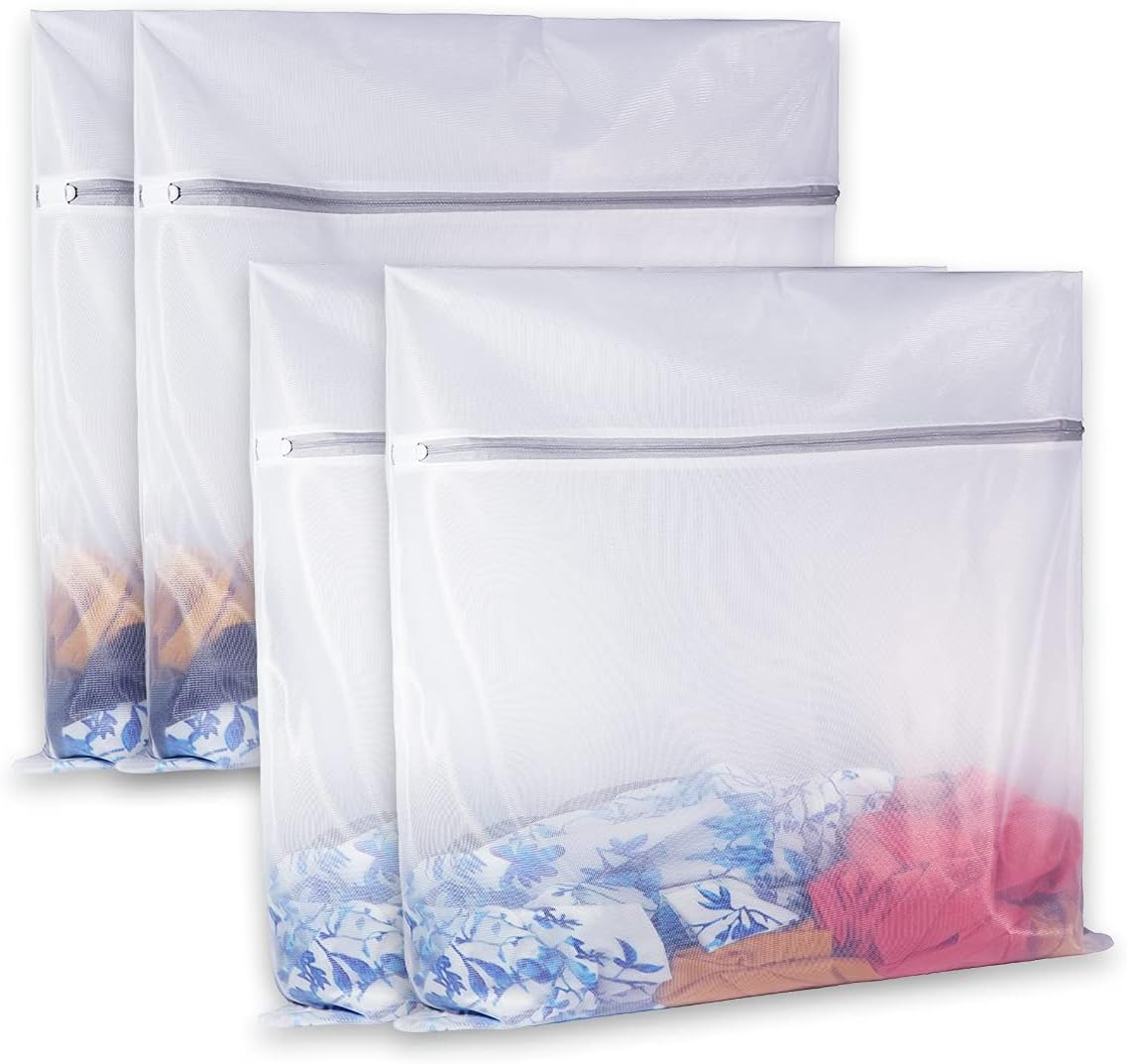 - 【4 Super Large Size Combination】: It is big size fine mesh household articles laundry bags,4 XXL size(24x24inch),this washing machine bags not only for ordinary clothes, but also suitable for washing Bath Towels, Bedding, Tablecloth, Curtains and Other Household Items. 4 pieces sets laundry mesh bag can meet for most family or collage dormitory demand.